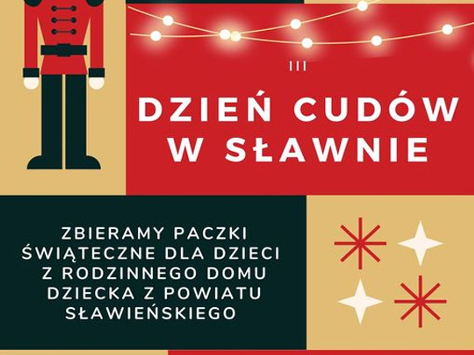 Już w tę niedzielę 17 grudnia startujemy z trzecią edycją Dnia Cudów w Sławnie! Zbieramy paczki świąteczne dla dzieci z Rodzinnego Domu Dziecka z Powiatu Sławieńskiego. Tym razem gramy dla Rodzinnego Domu Dziecka w Pięćmiechowie (gmina Malechowo). Mamy do obdarowania grupkę cudownych Dzieci, w wieku od 1,5 roczku do 19 lat, także jest pole do popisu!