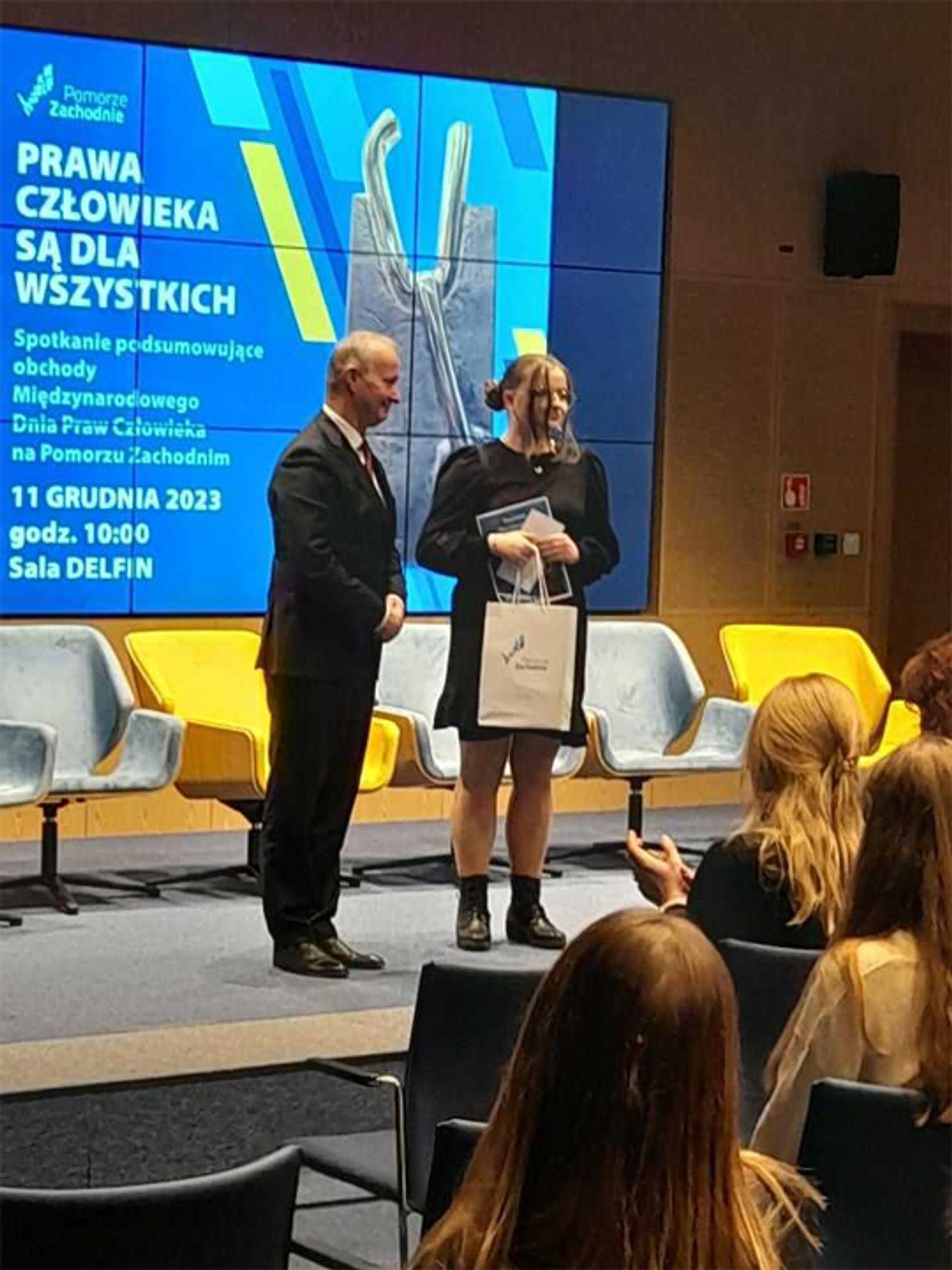 Po zakończeniu części oficjalnej wyróżnieni uczniowie wzięli udział w panelu dyskusyjnym na temat praw człowieka we współczesnym świecie.