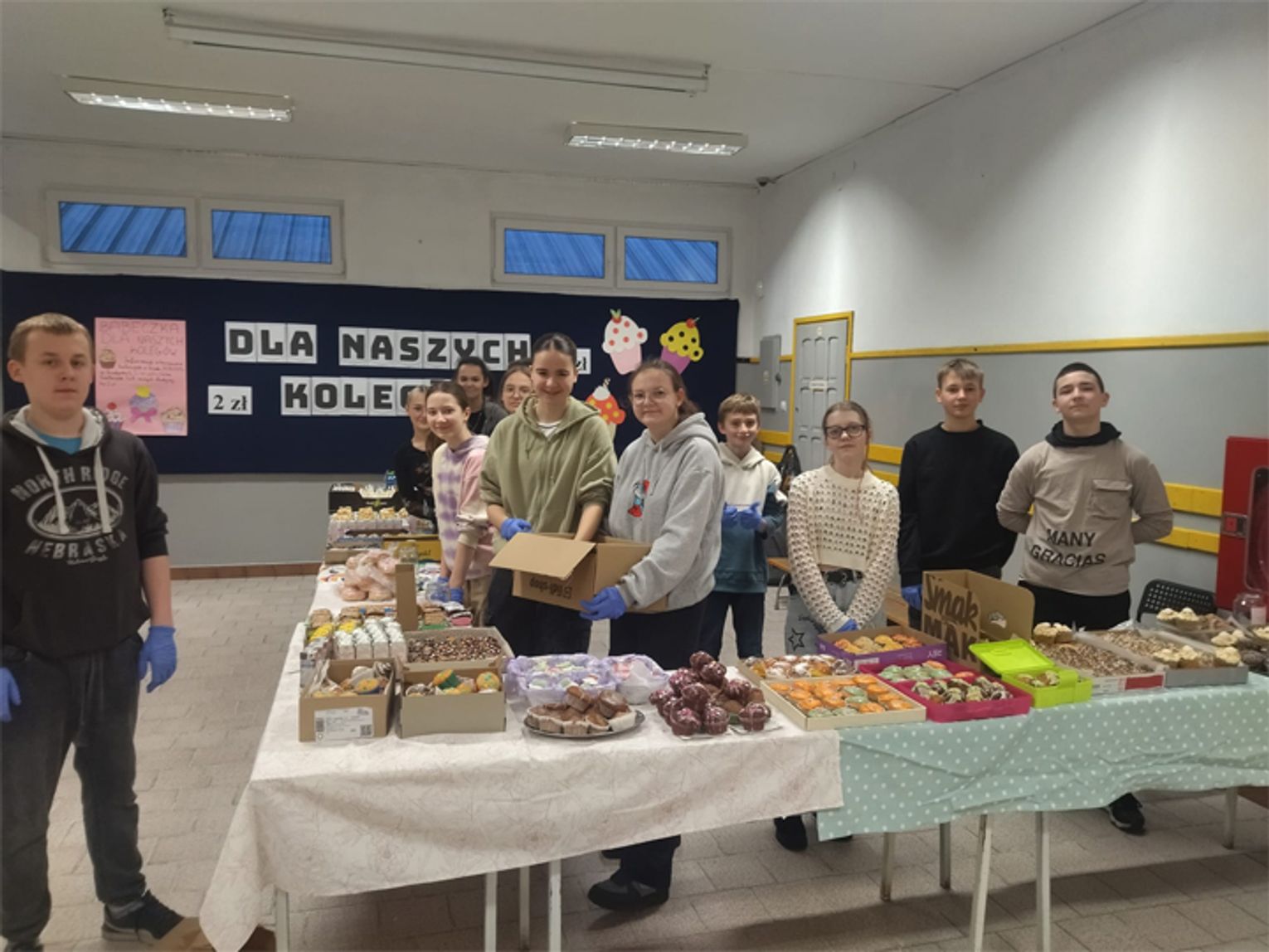 Uczniowie ze szkoły nie będąc obojętnym na tragedię, pomagają swoim kolegom i organizują różne akcje. Tym razem jest to sprzedaż za jedynie 2,00 zł babeczek i innych słodkości.