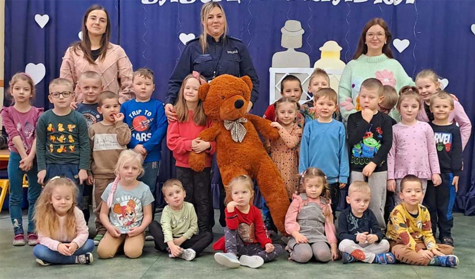 Policjanci z Komendy Powiatowej Policji w Sławnie spotkali się z dziećmi z Przedszkola Gminnego w Sławsku. Towarzyszył im niezwykły pomocnik – policyjny Miś Gustaw.