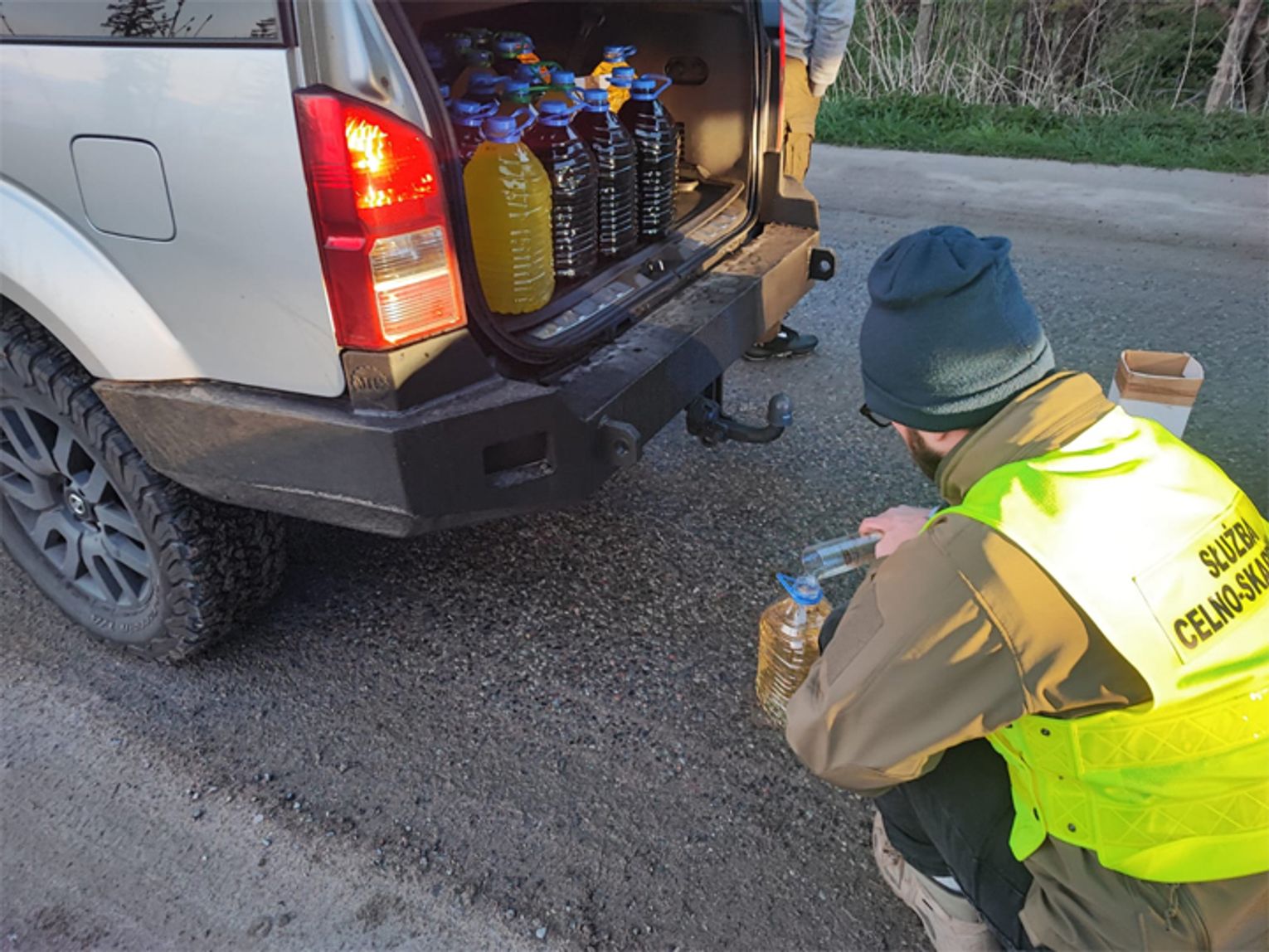 Alkohol został zabezpieczony do dalszego postępowania. Zatrzymaliśmy też telefony komórkowe mężczyzn. Trzech mężczyzn, mieszkańców powiatu łobeskiego którzy działali wspólnie i w porozumieniu usłyszało zarzuty posiadania i przewożenia wyrobów spirytusowych bez polskich znaków akcyzy. Zgodnie z kodeksem karnym skarbowym grozi im za to nawet kara do 3 lat pozbawienia wolności i wysoka grzywna. Teraz sprawą zajmie się komórka dochodzeniowo śledcza Zachodniopomorskiego Urzędu Celno-Skarbowego.
