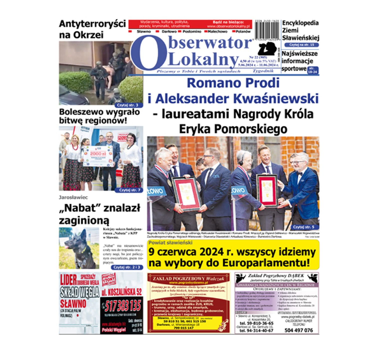 A w nim najświeższe informacje lokalne z terenu powiatu sławieńskiego.