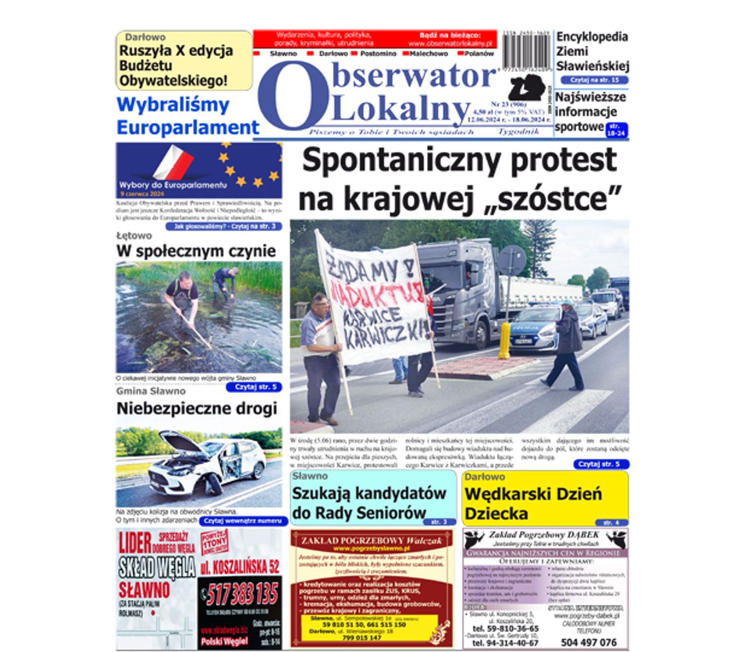 A w nim najświeższe informacje lokalne z terenu powiatu sławieńskiego.