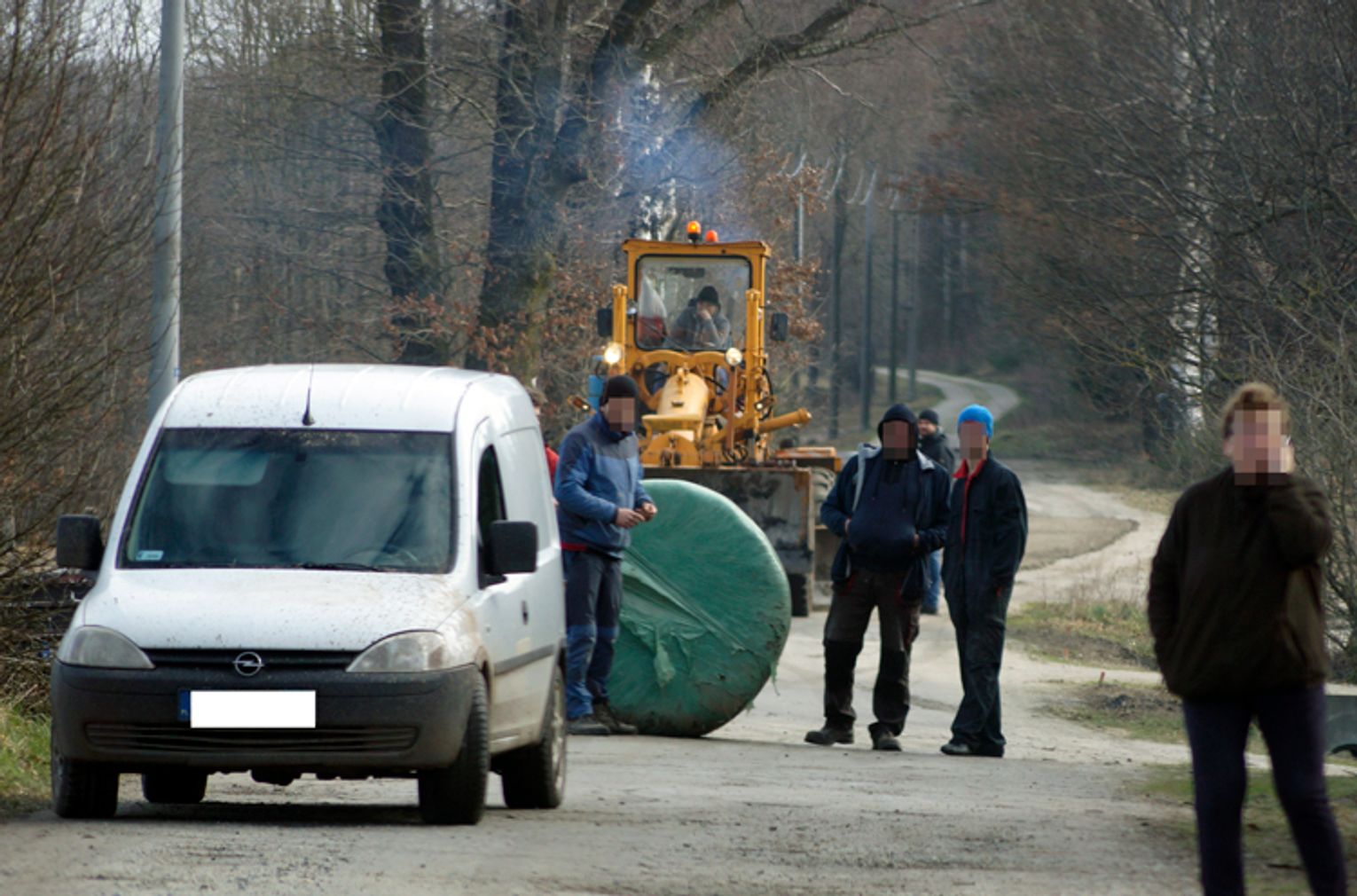 W środę rano grupa mieszkańców Wrześnicy zablokowała drogę, aby uniemożliwić pracę wyrównującej ją równiarki.
