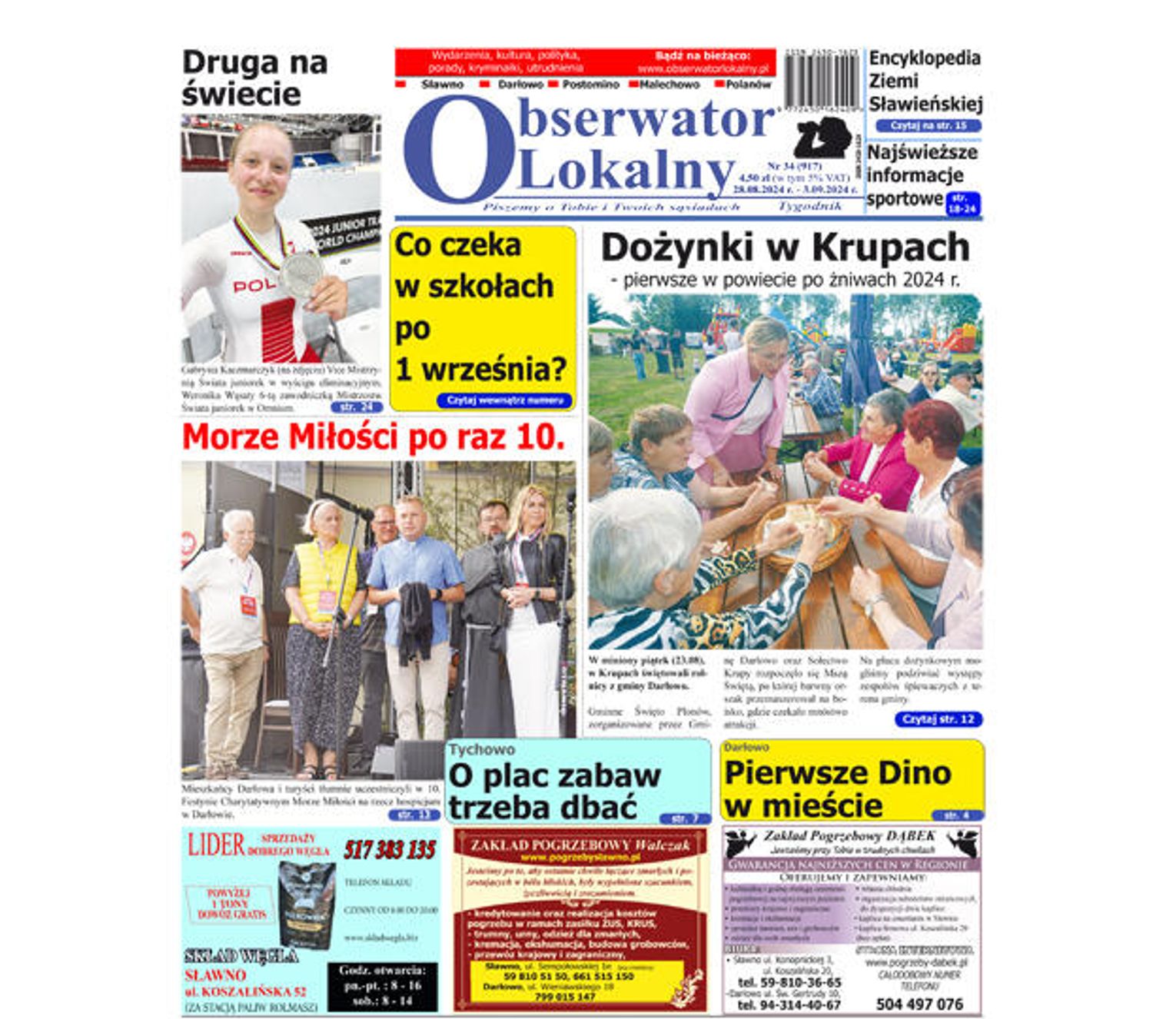 A w nim najświeższe informacje lokalne z terenu powiatu sławieńskiego.