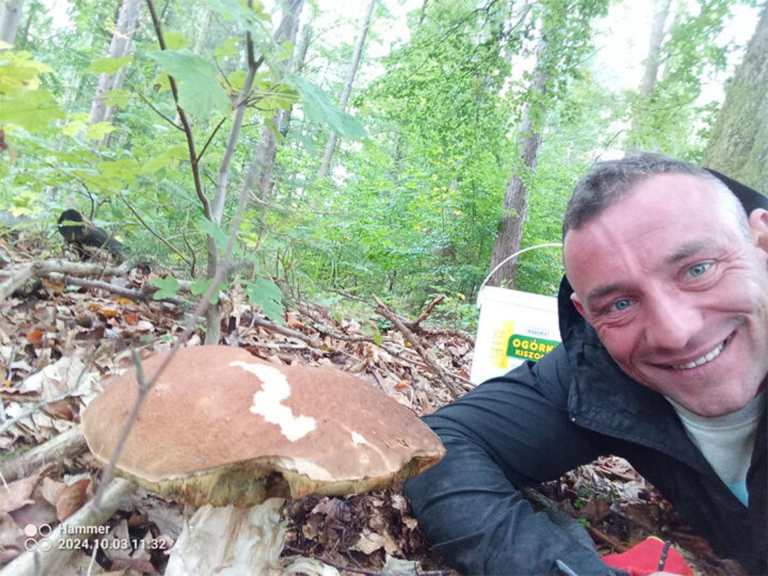 Jeden taki grzyb i cała suszarka jest już zapełniona. Prawdziwek ledwie się zmieścił do wiaderka 10 litrowego. . W lasach jest dość sucho więc grzyb nie nabrał wody i waga tego grzyba to ponad pół kilograma.