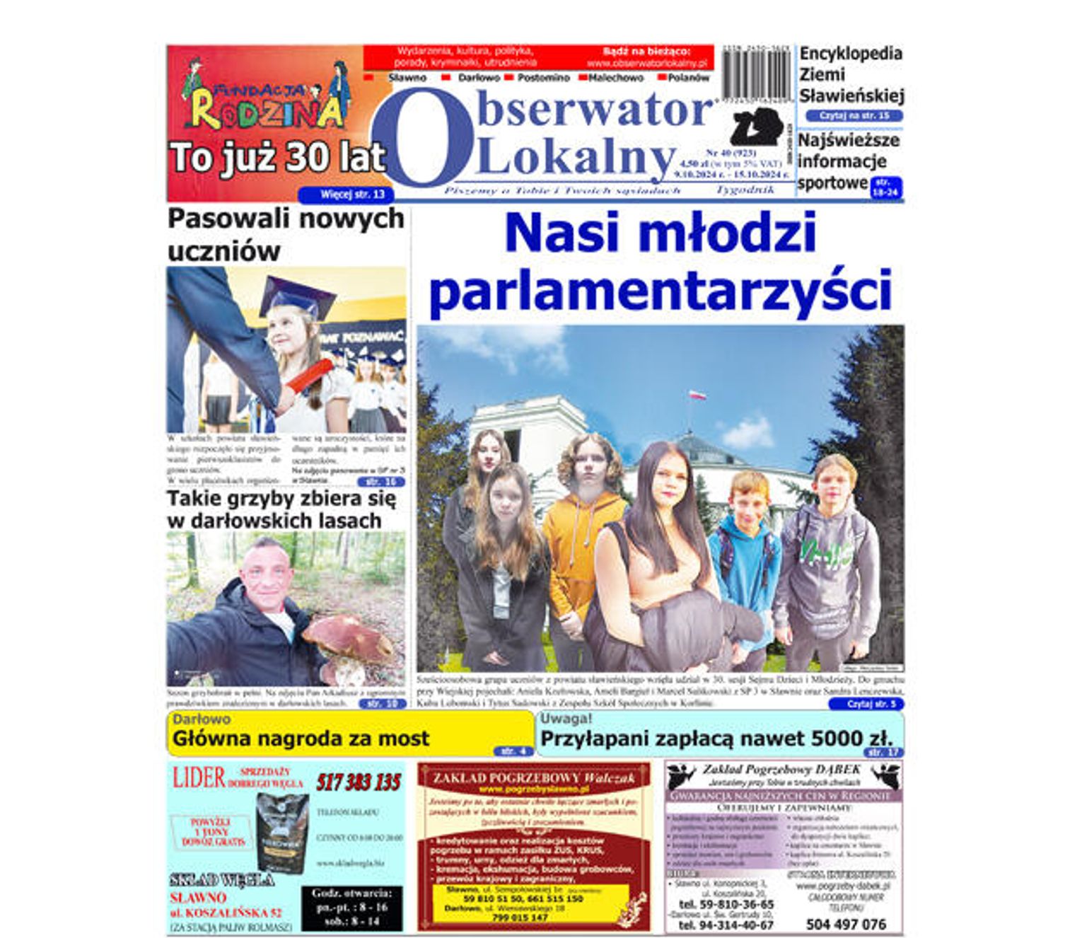 A w nim najświeższe informacje lokalne z terenu powiatu sławieńskiego.