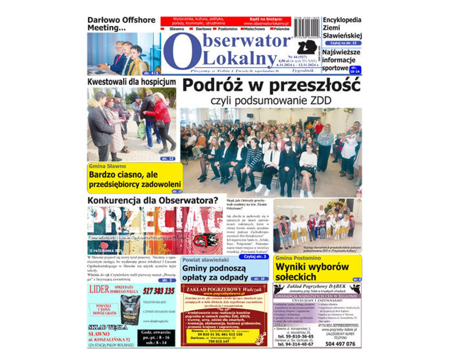 A w nim najświeższe informacje lokalne z terenu powiatu sławieńskiego.