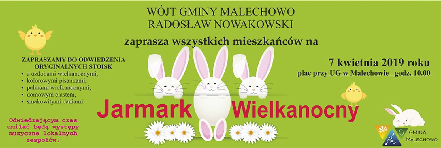 Zapraszamy na wesoły i kolorowy Jarmark Wielkanocny z oryginalnymi stoiskami. Na uczestników czekają wiosenne różności nawiązujące do zbliżających się świąt, m.in. ozdoby wielkanocne, kolorowe pisanki, palmy wielkanocne, domowe ciasta i smakowite dania. Ponadto czas umilą występy muzyczne lokalnych zespołów. To wszystko już w niedzielę, 7 kwietnia, o godz. 10:00 na placu przy Urzędzie Gminy Malechowo.