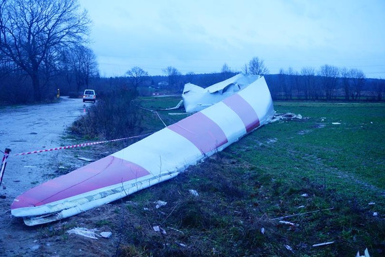 Oberwane skrzydło spadło kilka metrów od drogi do Pękanina. Na szczęście, w tym momencie, nikt tamtędy nie jechał... (ek)
