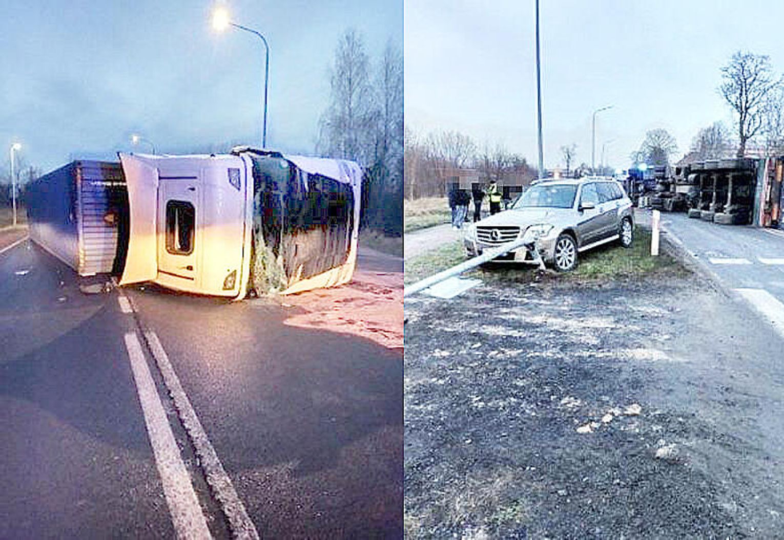Do zdarzenia doszło, gdy pojazd jadący krajową „szóstką” przyhamował przepuszczając samochód wyjeżdżający z Filtrowej. Jadący z tyłu kierowca ciężarówki początkowo nie zauważył sytuacji, a potem próbując uniknąć zderzenia, zjechał do rowu i przewrócił się. Aby uwolnić kierowcę TIR-a strażacy z PSP w Sławnie musieli wybić szybę przednią. W zdarzeniu ucierpiał także jadący z naprzeciwka Mercedes, który ratując się przed wypadkiem, uderzył w słup. Na szczęście, w zdarzeniu nikomu nic się nie stało.