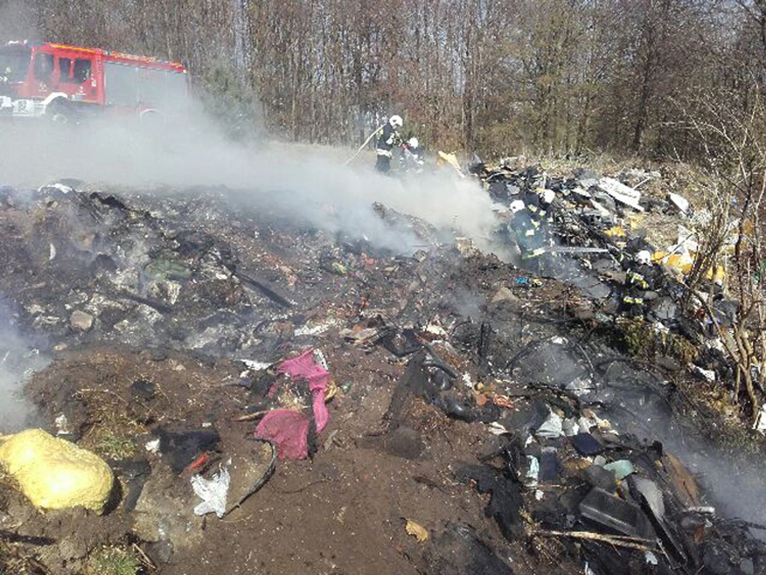 Koło Żukowa, w sobotę, aż 9 jednostek Państwowej i Ochotniczej Straży Pożarnej gasiło pożar nielegalnego wysypiska części samochodowych.