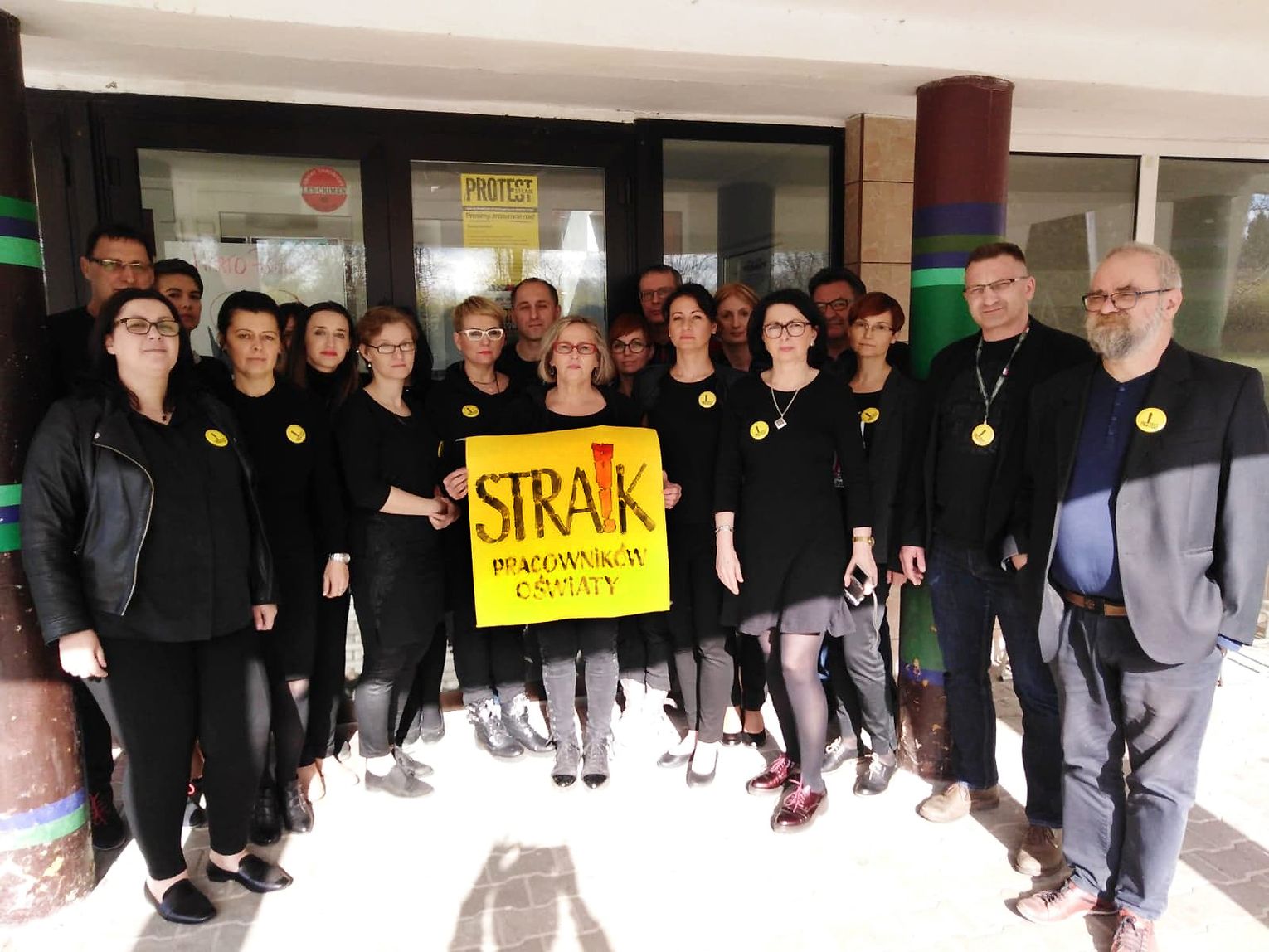 W Zespole Szkół Agrotechnicznych w Sławnie nauczyciele strajkują niezależnie od przynależności związkowej. Powyżej pamiątkowe zdjęcie strajkujących w tej placówce oświatowej.