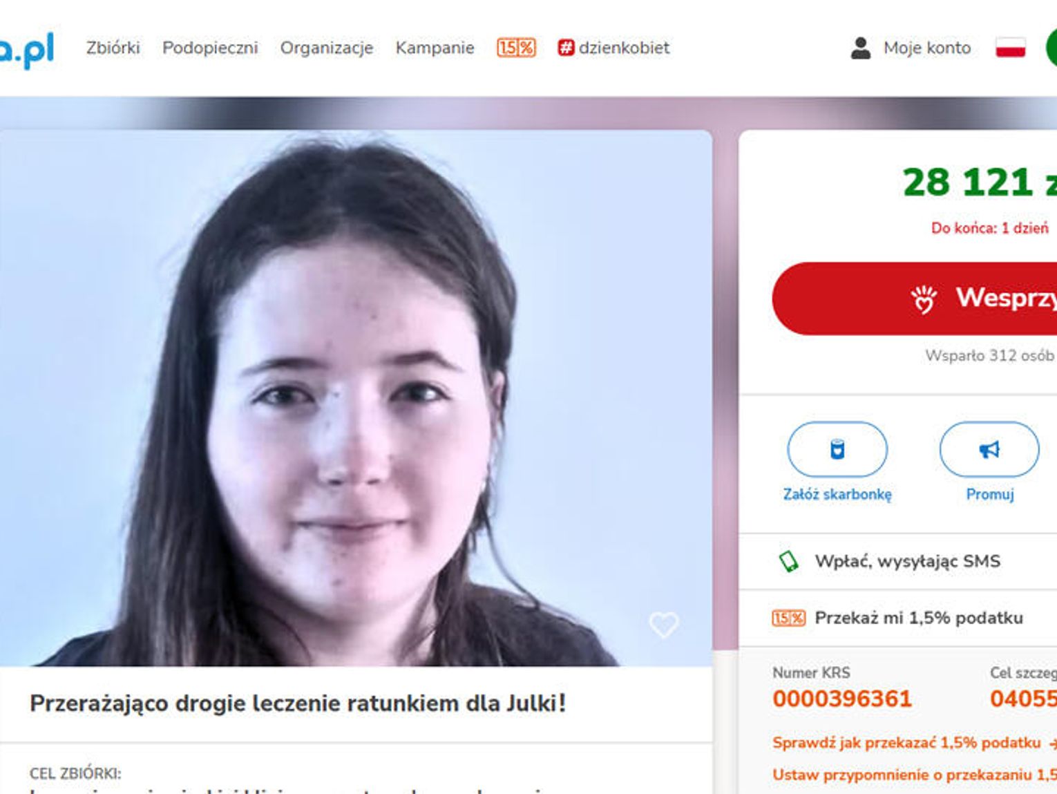 Na profilu zbiórki napisali: "Julka ma od 20 do 50 ataków dziennie" – taka informacja pojawiła się w opisie zbiórki Julii ponad rok temu. Niestety, nie udało nam się do tej pory zebrać odpowiedniej kwoty, aby rozpocząć diagnostykę córki w niemieckiej klinice, a ilość napadów epilepsji wzrosła drastycznie...