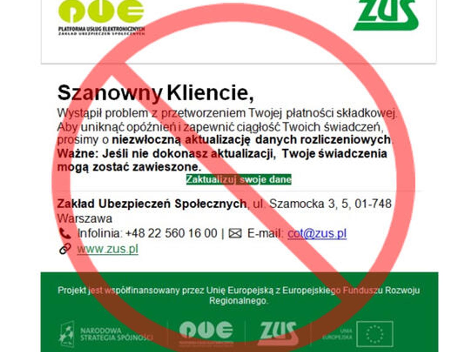 ZUS ostrzega, by w żadnym przypadku nie odpowiadać na maile ani nie otwierać załączników pochodzących od oszustów. Taka korespondencja najczęściej ma zainfekowa