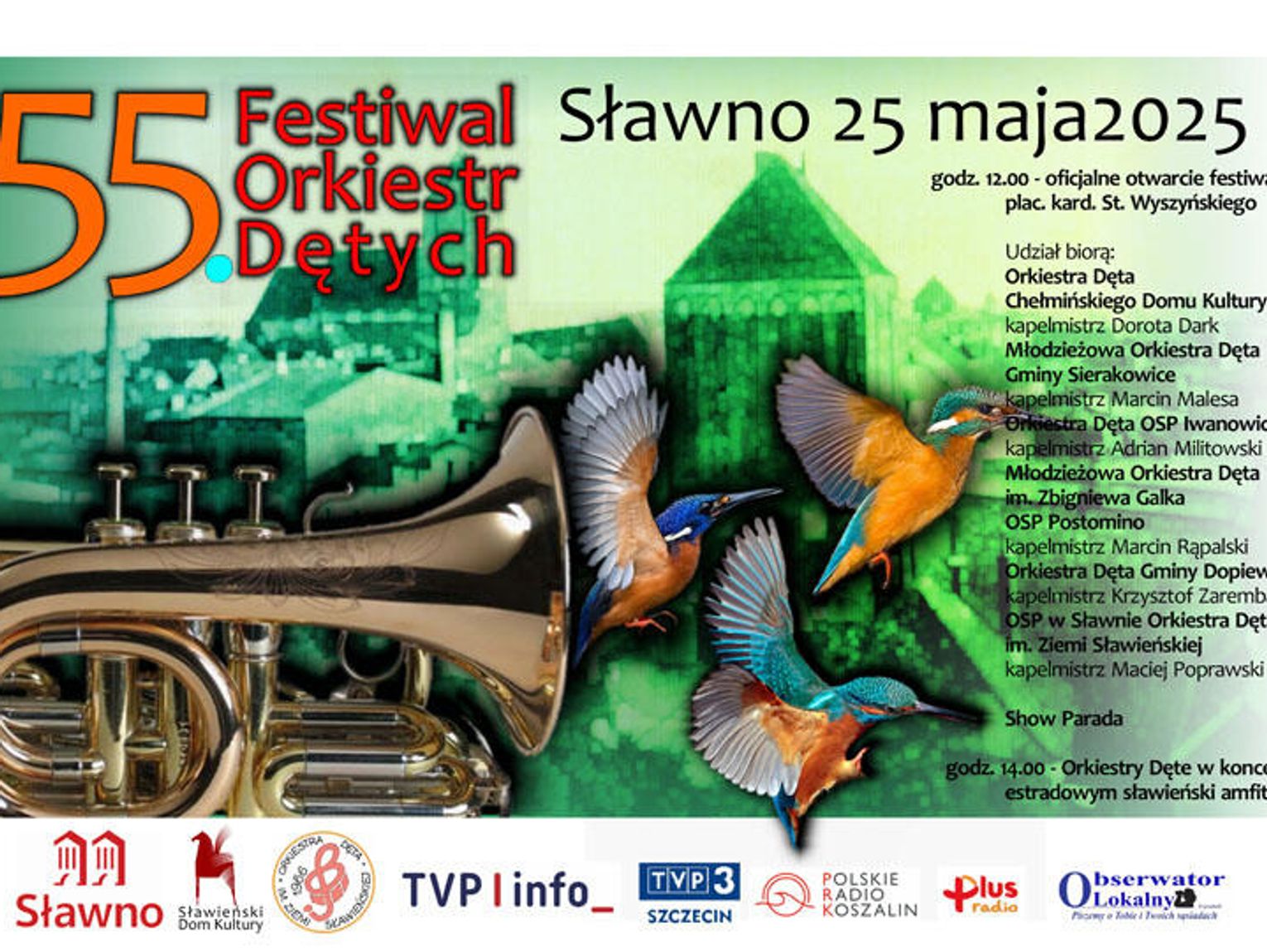 Od godz. 14.00 zapraszamy do sławieńskiego amfiteatru, gdzie orkiestry zaprezentują się w koncercie estradowym. W tym roku gościć będziemy: Orkiestrę Dętą Gminy Dopiewo, Orkiestrę Dętą OSP Iwanowice, Orkiestrę Dętą Chełmińskiego Domu Kultury , Młodzieżową Orkiestrę Dęta im. Zbigniewa Galka OSP w Postominie, Młodzieżową Orkiestra Dęta Gminy Sierakowice , OSP w Sławnie Orkiestrę Dętą im. Ziemi Sławieńskiej