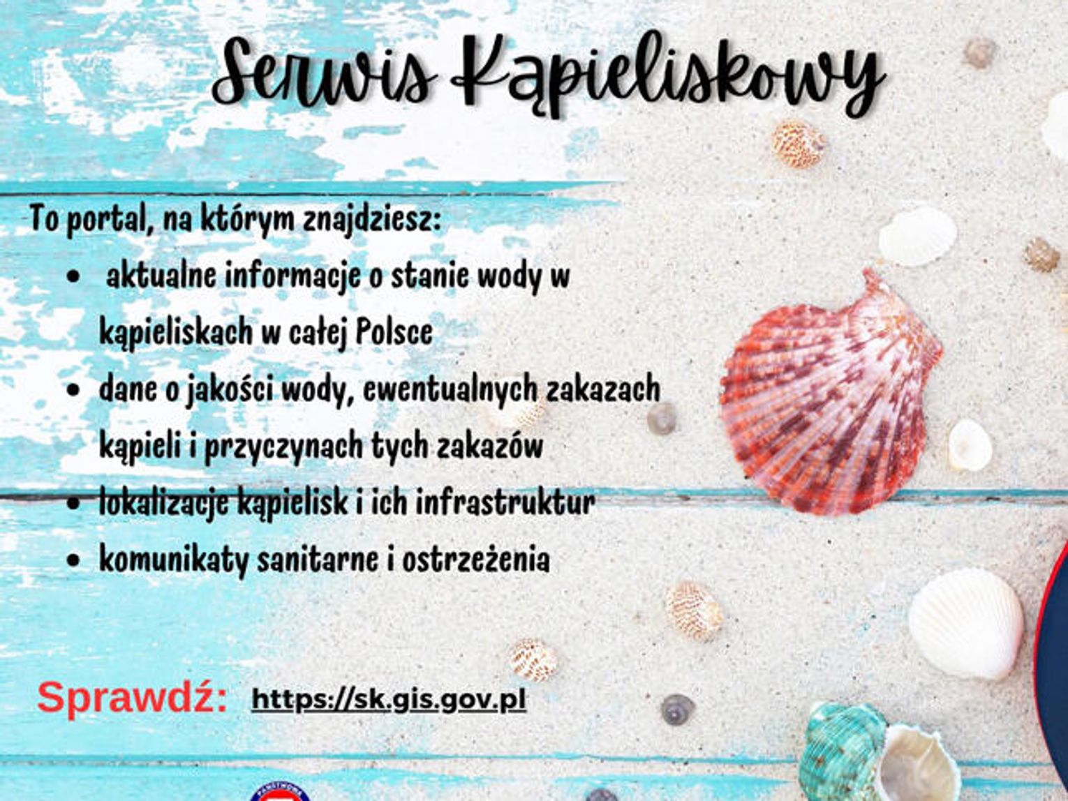 Państwowy Powiatowy Inspektor Sanitarny w Sławnie informuje, że pod adresem https://sk.gis.gov.pl/ dostępny jest Serwis kąpieliskowy. To portal informacyjny o jakości wody w kąpieliskach, zawierający (oznakowany na mapie Polski) wykaz wszystkich wyznaczonych uchwałami rad gmin kąpielisk.