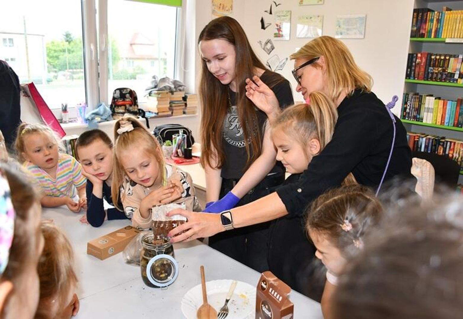 Po lekturze... zaczęła się prawdziwa kreatywna przygoda! Uczestnicy bibliotecznych zajęć malowali bakterie, przygotowywali kakao szambao, a potem sprawdzali, ile zapachów potrafią rozpoznać.
