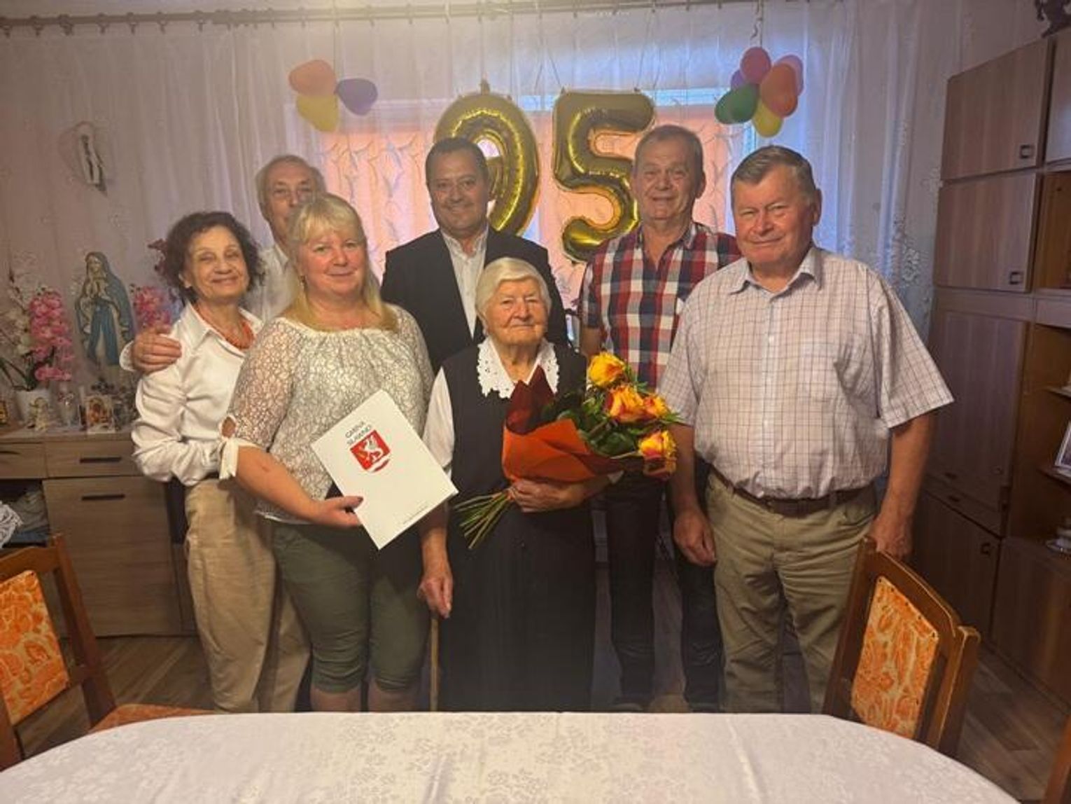 Tym razem przedstawiciele Gminy Sławno odwiedzili p. Bronisłąwę Więcek z Bobrowiczek, która w ostatnią niedzielę (17.08) skończyła 95 lat. Mimo wieku jest nadal pełna energii i chętnie dzieliła się z gośćmi historiami rodzinnymi i swoimi wspomnieniami.