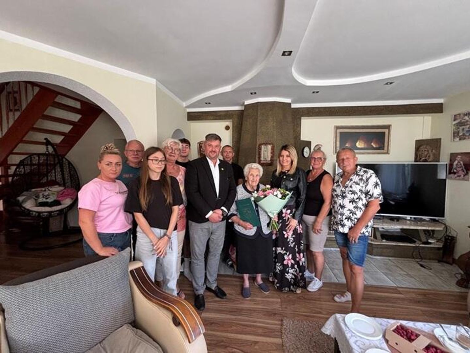 Gratulujemy Solenizantce tak pięknego wieku i życzymy jeszcze wielu lat spędzonych w otoczeniu troskliwej rodziny i w jak najlepszym zdrowiu!