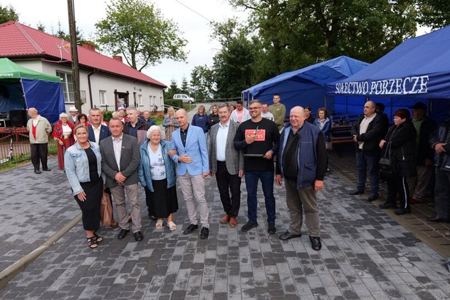 Festyn Rodzinny w Porzeczu był nie tylko dobrym powodem do zabawy, ale także do radości. Podczas wydarzenia nastąpiło symboliczne podsumowanie zrealizowanej inwestycji „Przebudowa dróg gminnych w miejscowości Porzecze”.
