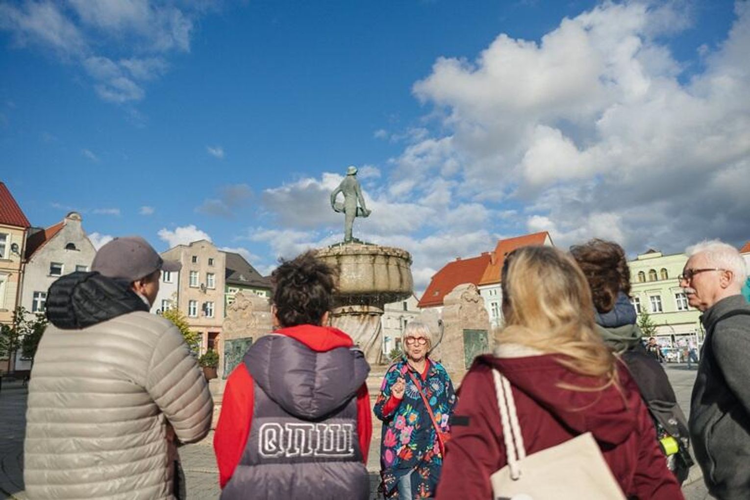 O łączących się światach realnym i literackim w trakcie spacerów opowiadała p. Krystyna Różańska – radna, licencjonowana przewodniczka i wielka ambasadorka twórczości Tyrmanda. W ramach zastępstwa grupę dwukrotnie poprowadziła także p. Renata Potomska - również radna i przewodniczka, przyjaciółka Darłowa i Darłowskiego Ośrodka Kultury.