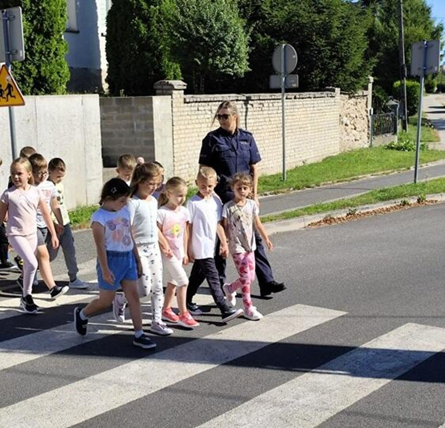Ważnym elementem zajęć były ćwiczenia praktyczne dla przejściu dla pieszych, podczas których dzieci, pod okiem funkcjonariuszy, uczyły się prawidłowego przechodzenia przez jezdnię.