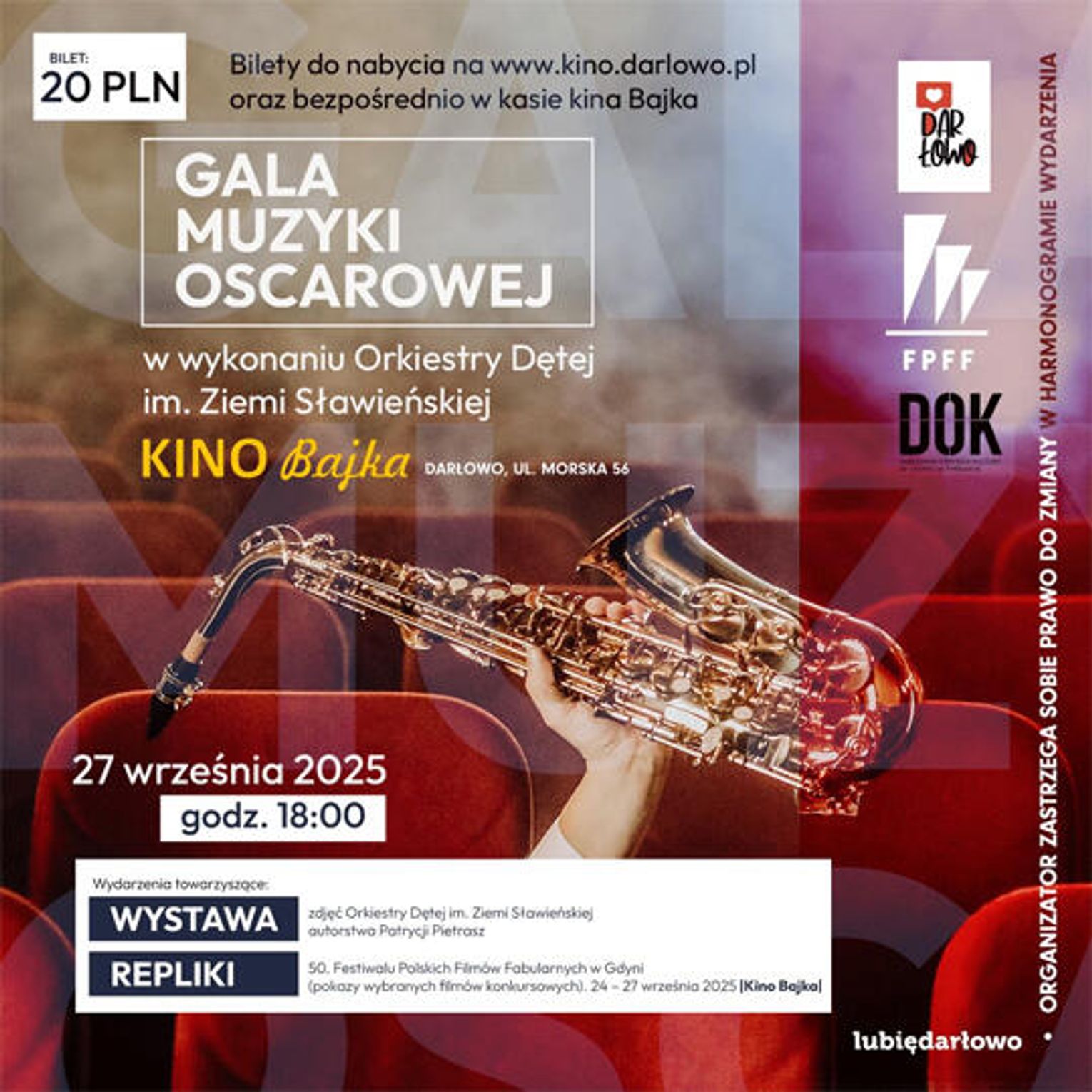 Koncert "Gala Muzyki Oskarowej" zaplanowano na sobotę 27 września 2025 roku o godzinie 18:00 w kinie Bajka.