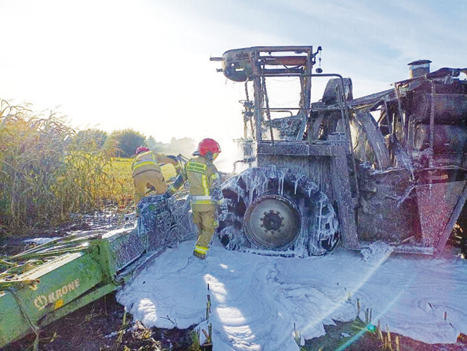 Niebezpieczny pożar wybuchł na polach w okolicy Glęźnowa – zapalił się kombajn do zbioru kukurydzy. W akcji ratowniczej uczestniczyło 5 zastępów straży pożarnej (2 z PSP Darłowo, 1 z OSP Bukowo Morskie i 2 z OSP Dobiesław). Zastosowanie tak dużych sił na nic się zdało, maszyna była w całości objęta ogniem w momencie przyjazdu zastępów. Kombajn spłonął całkowicie.