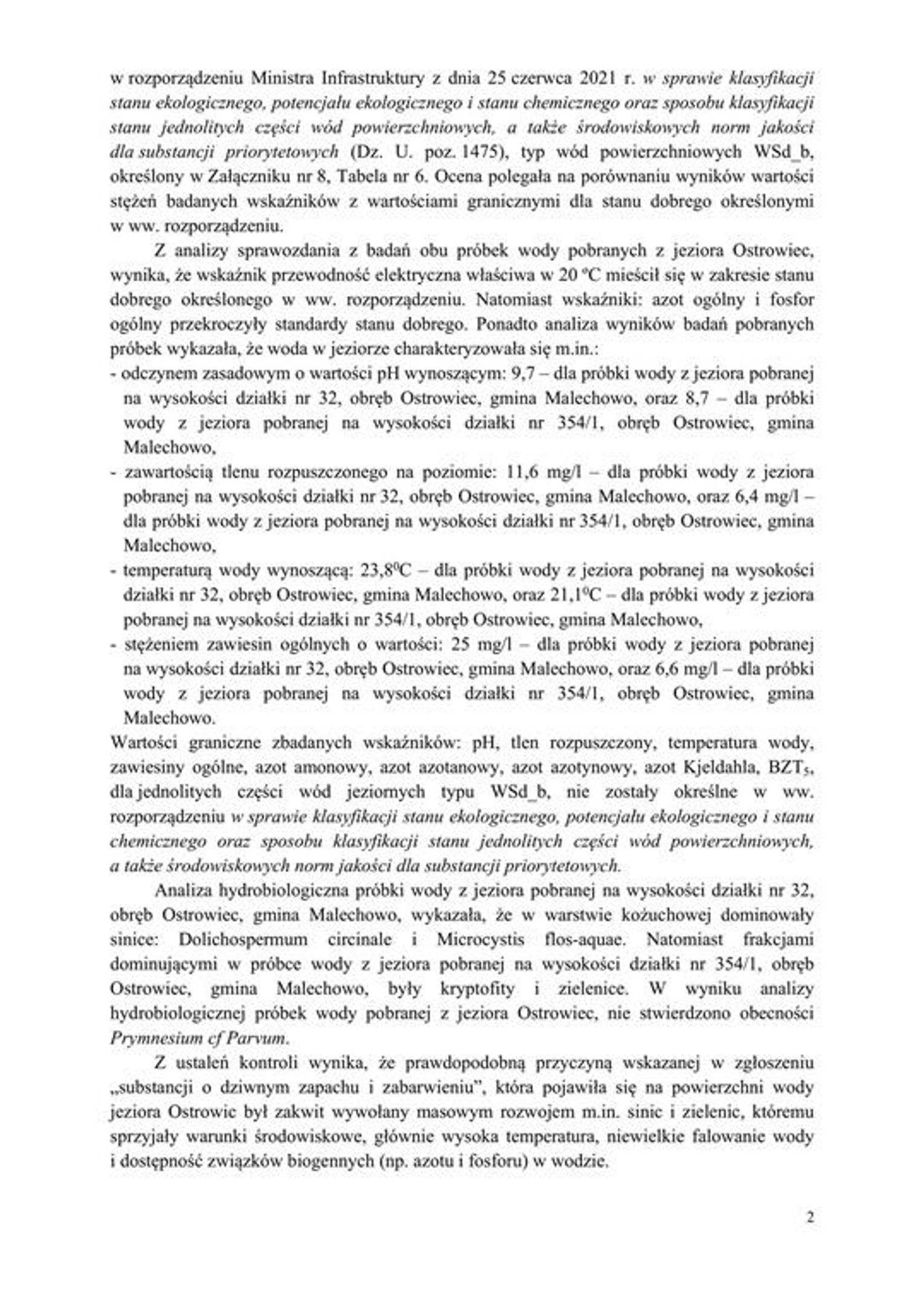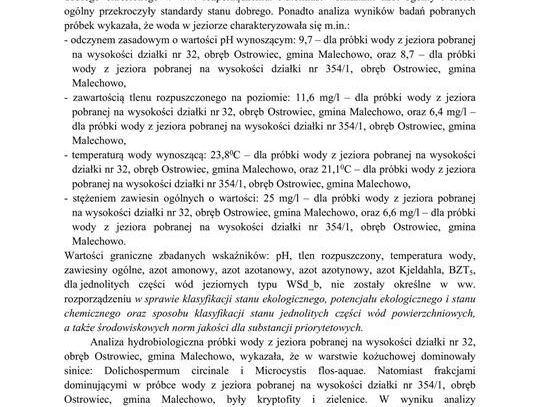 Na początku września na jeziorze w Ostrowcu zaobserwowano "substancje o dziwnym zapachu i zabarwieniu" oraz "kożuch substancji organicznej". Zaalarmowany niecodzienną sytuacją Zachodniopomorski Wojewódzki Inspektor Ochrony Środowiska przeprowadził oględziny zachodniej części brzegu wody, co pozwoliło ustalić przyczynę jej złego stanu. Wyniki badań laboratoryjnych wykazały, że przyczyną niepokojących zmian w jeziorze był zakwit wywołany przez masowy rozwój m.in. sinic i zielenic. Jak podaje ZWIOS, jest to naturalne zjawisko przyrodnicze. Należy jednak pamiętać, że najprawdopodobniej wywołał je wzrost żyzności jeziora, na co ma wpływ zawarte w nawozach sztucznych azotany i fosforany.