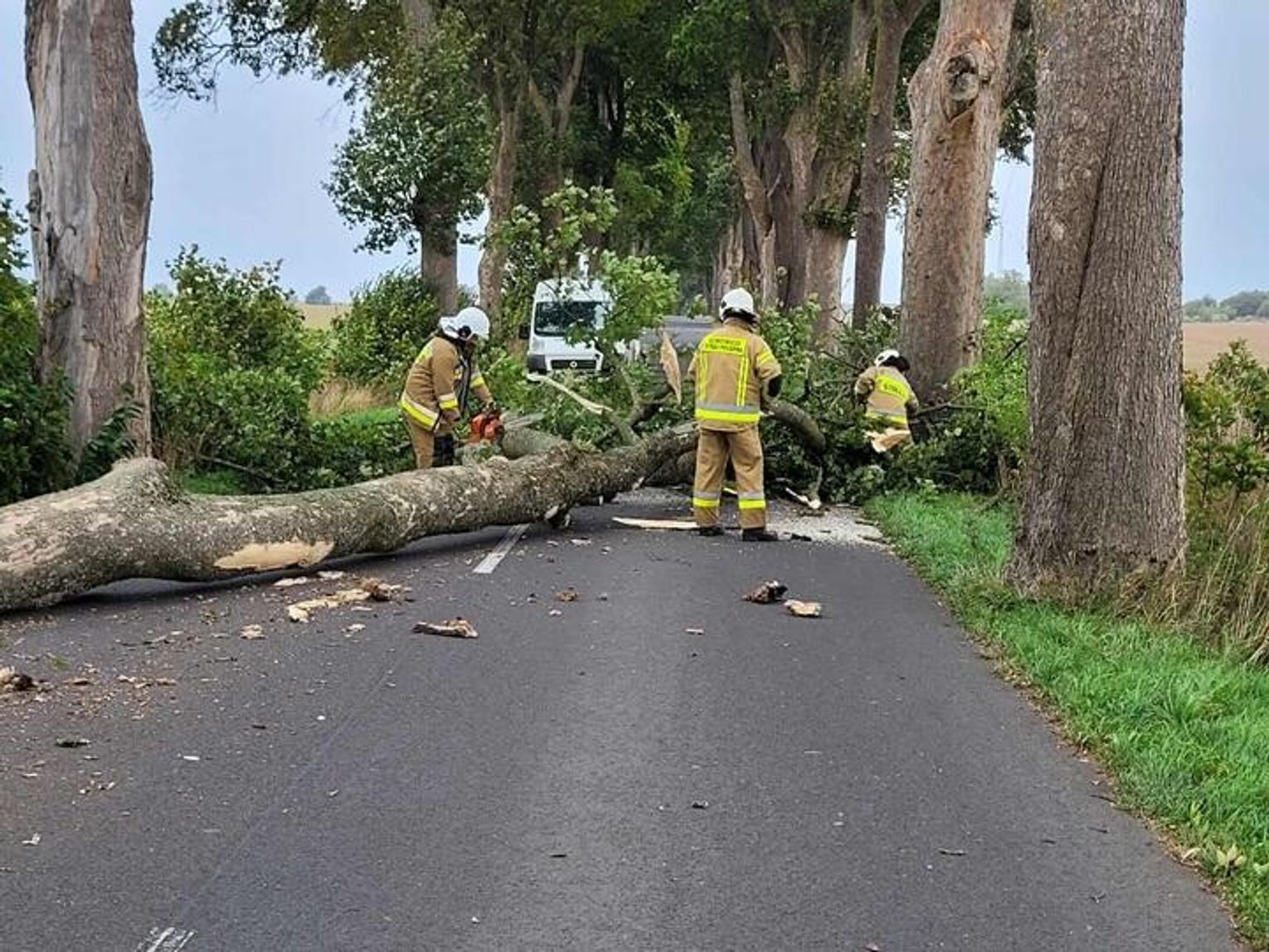 W dniu dzisiejszym (04.10.) silny wiatr zawiał na całym wybrzeżu – od Szczecina aż do Elbląga. Jego skutki były także widoczne na obszarze powiatu sławieńskiego. Druhowie tylko z Ochotniczej Straży Pożarnej w Ostrowcu byli wzywani czterokrotnie do usunięcia powalonych drzew i konarów tarasujących drogi. Pracę wykonywali poprzez zabezpieczenie terenu, a następnie użycie pilarek spalinowych i udrażnianie przejazdu.