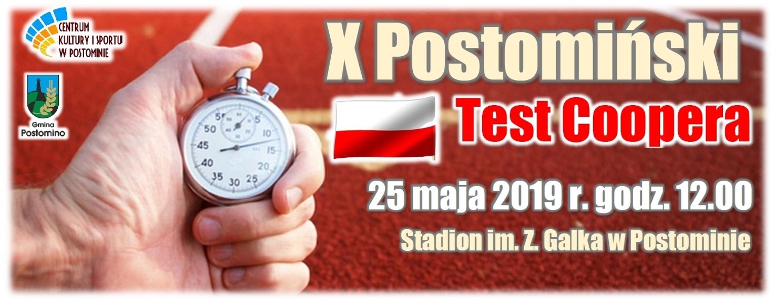 O godz. 12.00 rozpocznie się X Postomiński Test Coopera „Sprawdź Siebie Samego". Test Coopera polega na przebiegnięciu jak najdłuższego dystansu w czasie 12 minut. Na podstawie przebiegniętego dystansu za pomogą specjalnych tabel oceniana jest nasza kondycja. Serie z udziałem młodzieży szkół podstawowych rozegrane zostaną od godziny 12.00. Od godz. 13.00 rozpoczną się serie otwarte, gdzie pobiegną członkowie klubów Biegacza: z Postomina, Ustki , Darłowa, Sławna, Korzybia, Słupska, Koszalina. Następnie wystartują serie w których pobiegną samorządowcy, radni, sołtysi, urzędnicy. Dla zwycięzcy puchar ufundował Przewodniczący Rady Gminy, natomiast nagrody Park Wodny JAN w Darłówku. W ostatniej serii wystartują „Weterani 50+" czyli wszystkie osoby, które ukończyły 50 rok życia. Dla nich puchar ufundował Dyrektor Centrum Kultury i Sportu w Postominie, a nagrody podobnie jak u samorządowców Park Wodny JAN w Darłówku. Tegoroczną nowością będzie rywalizacja sołectw o Puchar Wójta Gminy Postomino. Każde sołectwo może zgłosić drużyna składającą się z 3 osób w tym minimum 1 kobiety. Łączny przebiegnięty dystans decyduje o zajętym miejscu. Dla 3 najlepszych sołectw przygotowano nagrody pieniężne w wysokości 300zł (I miejsce) 200zł (II miejsce) 100zł (III miejsce).