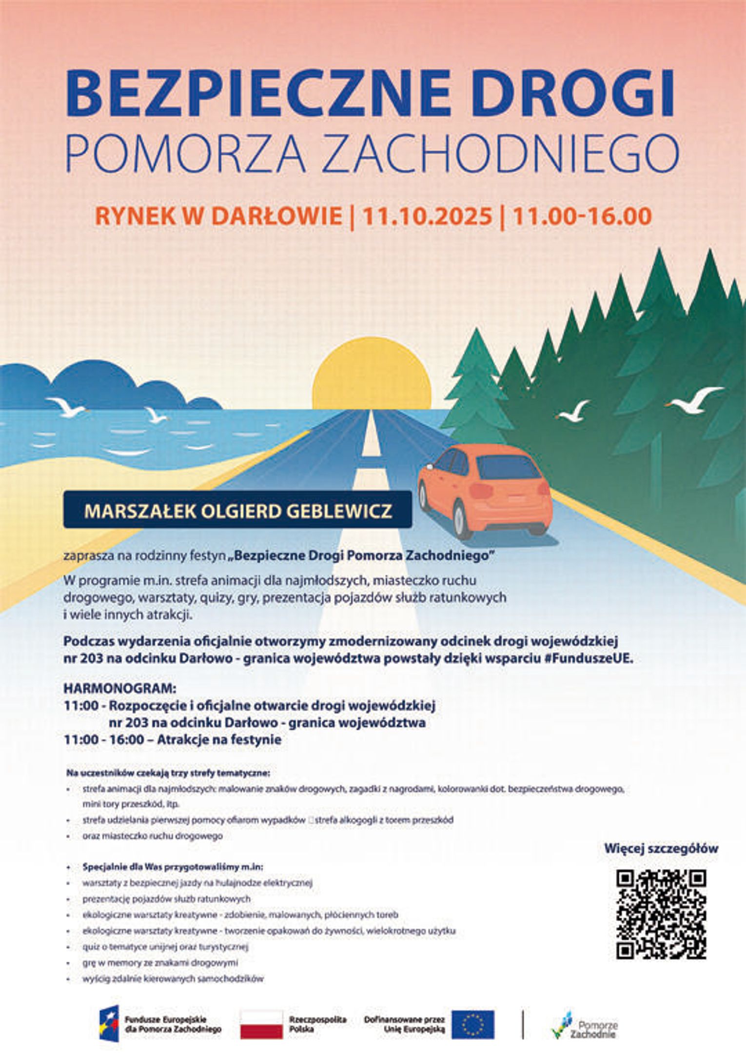 Oficjalnie otworzymy także zmodernizowaną drogę wojewódzką nr 203 (Darłowo–grani ca województwa).