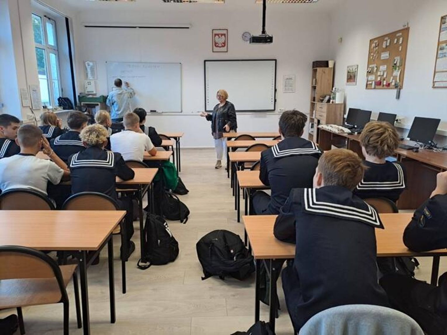 Z kolei uczniowie Technikum Morskiego uczestniczyli w zajęciach z udziałem terapeuty rodzinnego, socjologa i specjalisty terapii uzależnień Elżbiety Karnickiej, której asystowali psycholodzy Dorota Simko (praktykantka) i Tomasz Mielczarek.