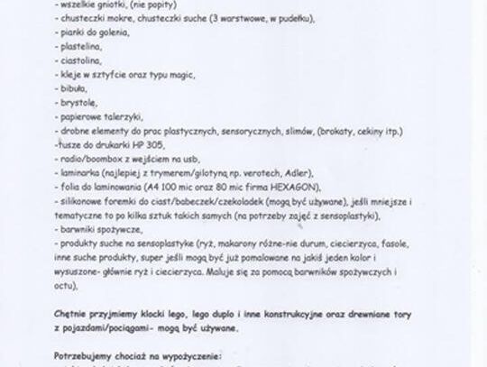 Zbiórka ma charakter pilny — materiały potrzebne są od zaraz, aby kontynuować zajęcia bez przerw i zapewnić dzieciom dostęp do niezbędnych środków do pracy kreatywnej.