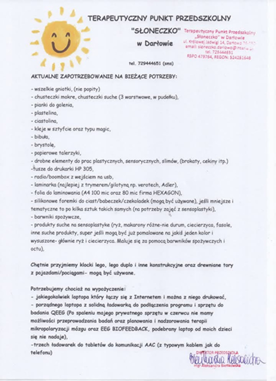 Rada 3 Wielopoziomowej Drużyny Harcerskiej „Cichociemni” postanowiła zaangażować się w pilną pomoc dla Terapeutycznego Punktu Przedszkolnego „Słoneczko” w Darłowie.