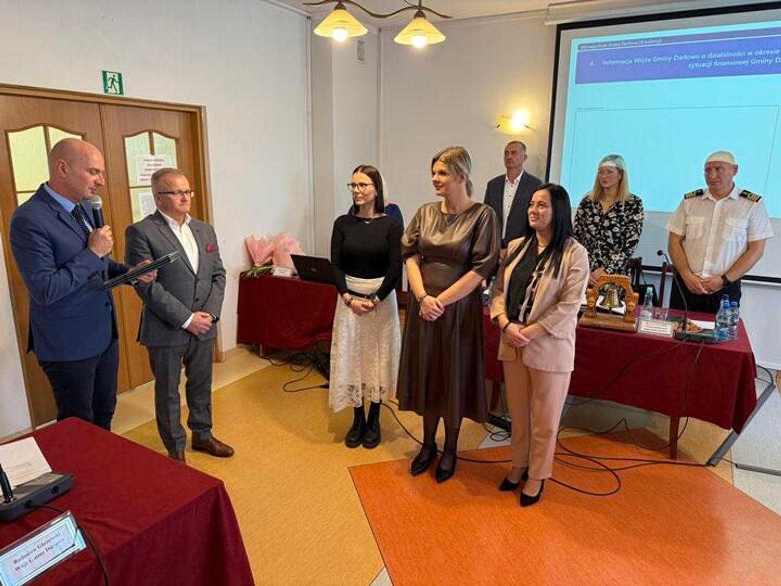 XIX Sesję Rady Gminy Darłowo uświetniła dodatkowa, radosna ceremonia. Wójt Gminy Darłowo Radosław Głażewski oraz Przewodniczący Komisji Oświaty i Kultury, Radny Waldemar Bonk wręczyli akty mianowania trzem nauczycielkom ze Szkoły Podstawowej im. Ratowników Morskich w Dąbkach. Były to: Pani Dominika Chruszcz – nauczycielka kształcenia specjalnego, Pani Anna Maciejczyk – nauczycielka wychowania wczesnoszkolnego oraz Pani Anna Smolińska – nauczycielka wspierająca proces kształcenia ucznia.