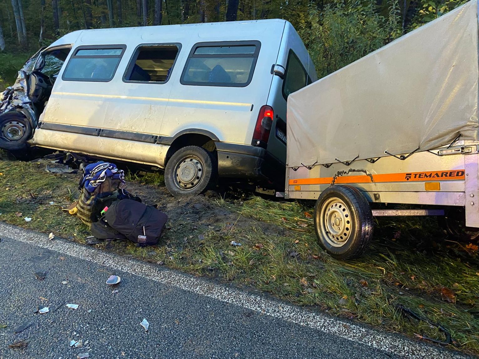Cztery z nich trafiły do szpitala. Do tego dwa rozbite pojazdy – to efekt bardzo groźnego zdarzenia na łuku drogi koło Grzybna w gminie Sławno. W piątek (24.10) rano, około godziny zderzyły się tam pasażerski bus i Audi. Ten drugi pojazd rozpadł się na dwie części!