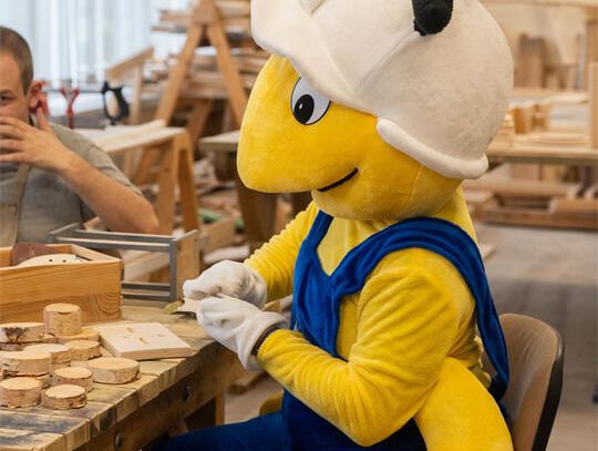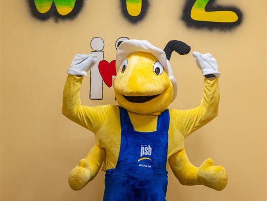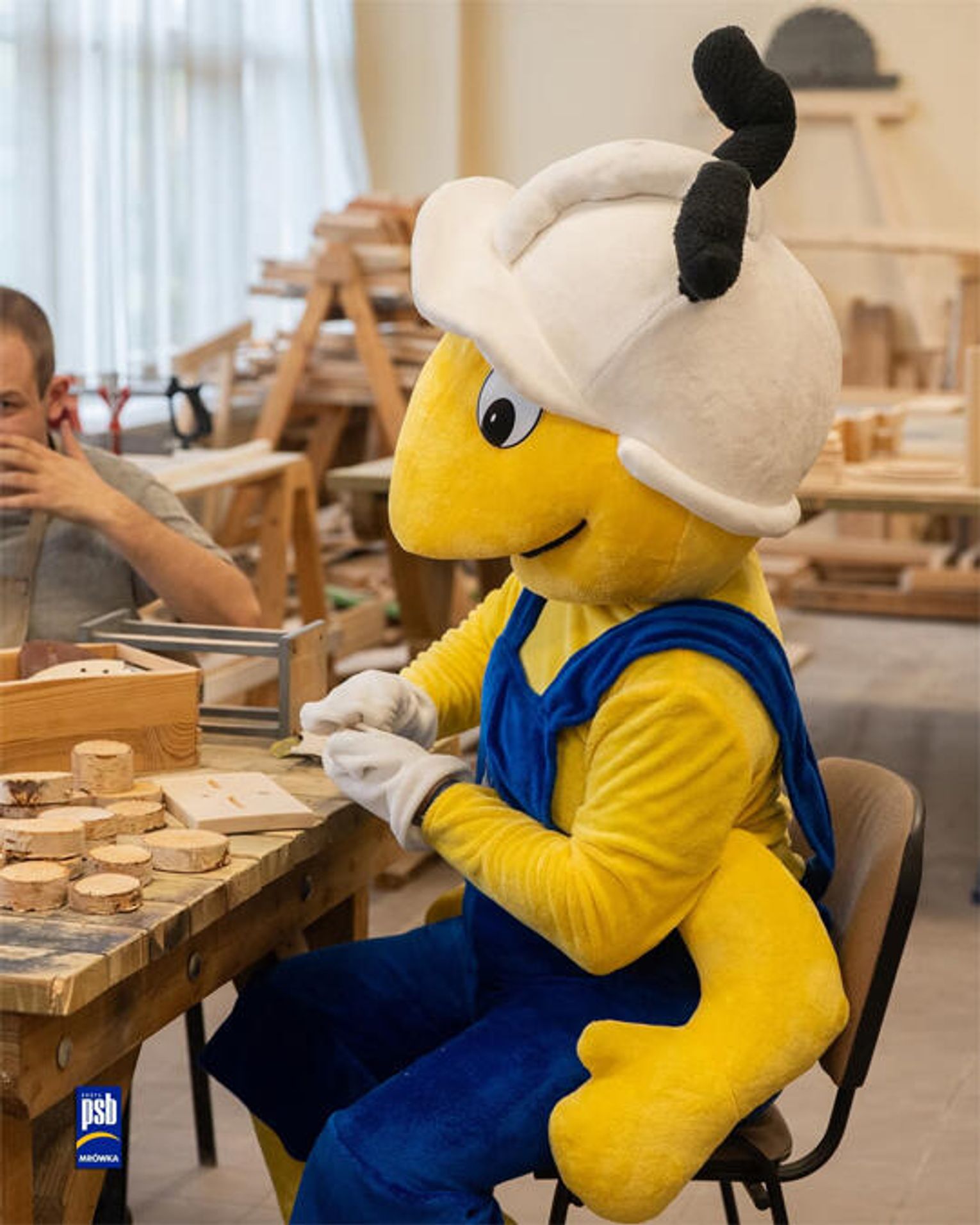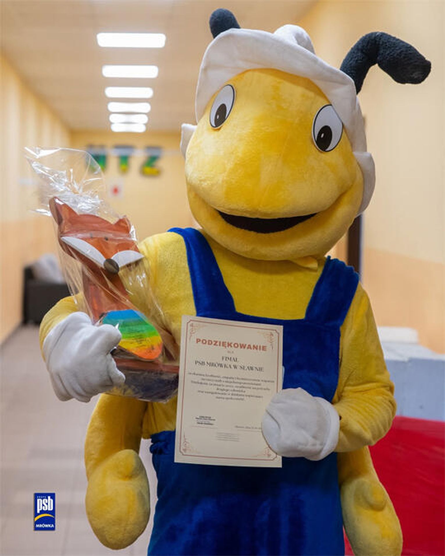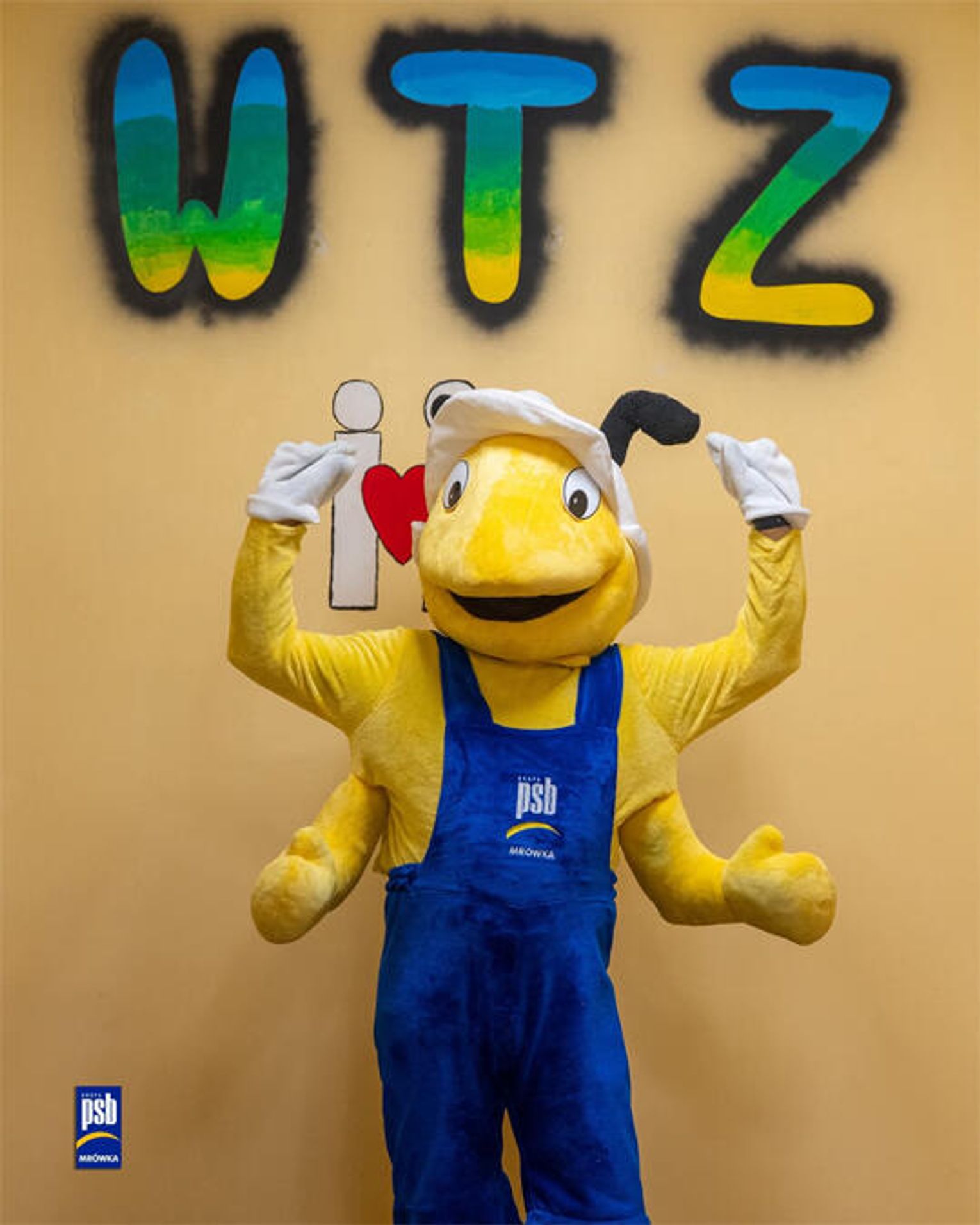 Nie zabrakło również miłej niespodzianki – odwiedzin firmowej maskotki Mrówki, która tego dnia rozświetliła twarze uczestników zajęć uśmiechem i wspólną zabawą.