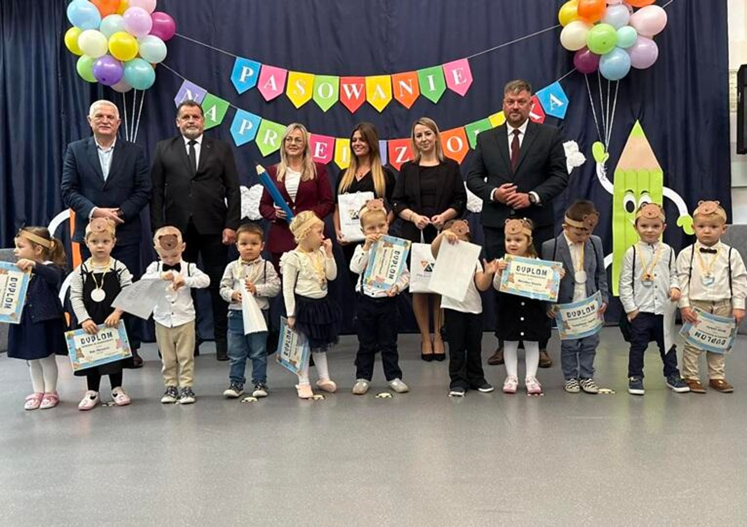 Samego pasowania na przedszkolaka dokonała Wicedyrektor Zespołu Szkolno-Przedszkolnego Danuta Sieklucka. Uroczysty moment polegał na podejściu wychowanka do symbolicznego ołówka, przy którym następowało oficjalnie przyjęcie do grona przedszkolaków. Na dowód tego wydarzenia mali uczestnicy otrzymali pamiątkowe dyplomy oraz drobne upominki. To był mały, ale wyjątkowo istotny pierwszy krok w edukacyjnej przygodzie, wykonany z widoczną radością, dumą i ekscytacją dzieci.