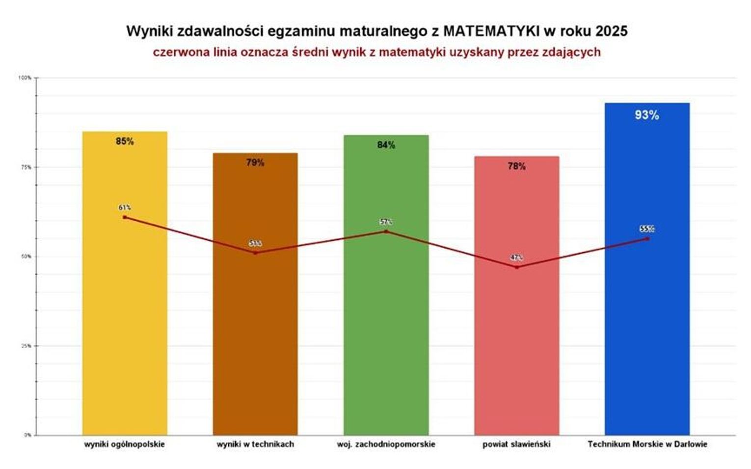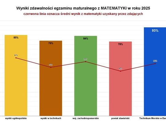 Szczególnie wyróżniły się wyniki z matematyki, gdzie zdawalność wyniosła 93%, przy średniej ogólnopolskiej na poziomie 85%. Średni wynik z tego przedmiotu w Darłowie to 55%, czyli wyraźnie powyżej średnich osiąganych przez uczniów w regionie i kraju.