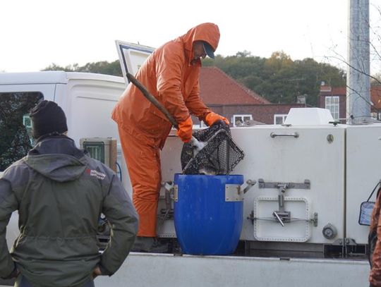 W minionym tygodniu, Okręg PZW w Słupsku zarybiał też jezioro Nidno w Krągu. Tam wpuszczono około 150 kg kroczka lina.