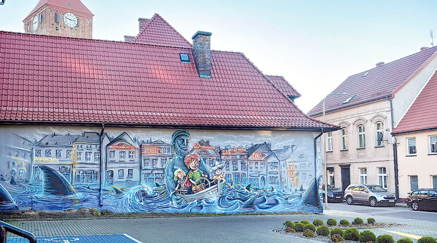 Z kolei w Darłowie przy ul. Franciszkańskiej powstało wyjątkowe dzieło, które stworzył znany artysta - Cukin z Koszalina. Mural stworzony został w ramach ogólnopolskiej kampanii „Dzieciństwo bez przemocy”. To kolorowa opowieść inspirowana historią Darłowa.