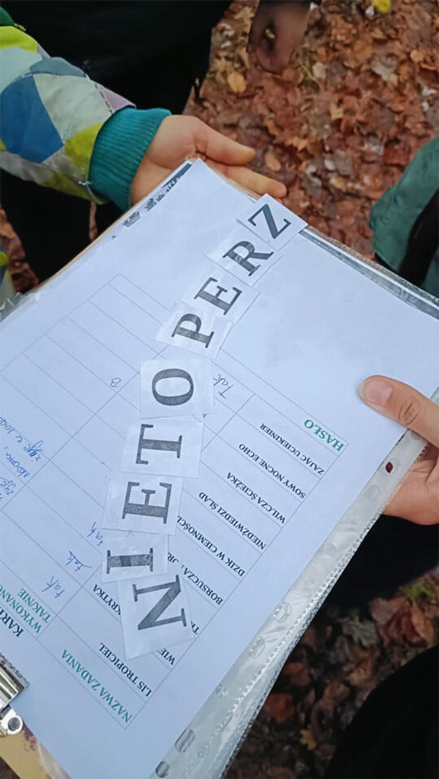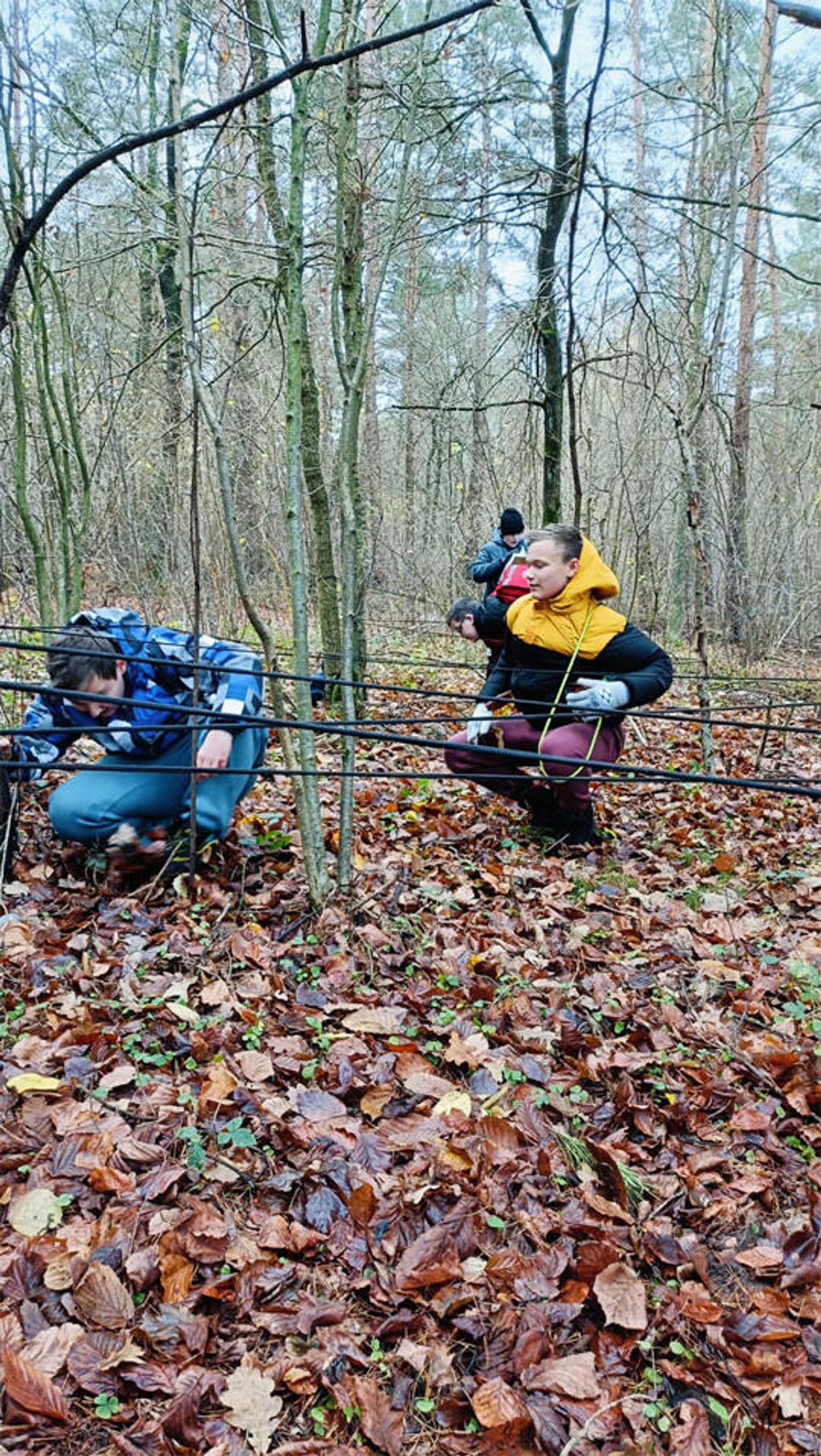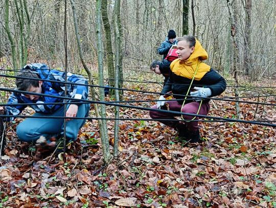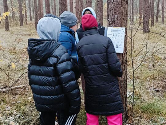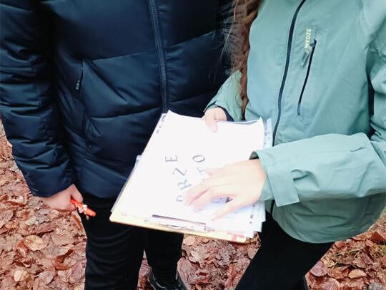 Zajęcia prowadziła Marta Kotusiewicz z Fundacji „Las Story”. Mimo niesprzyjającej pogody — deszczu i przenikliwego chłodu — uczestnicy aktywnie angażowali się w zaplanowane ćwiczenia, łącząc zabawę z nauką o przyrodzie.