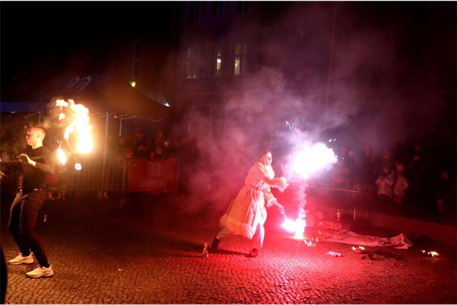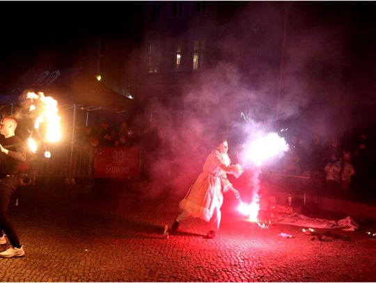 Na zakończenie wieczoru publiczność obejrzała spektakl Marcela Trąbki, po którym nastąpił gorący pokaz fireshow, będący efektownym finałem miejskich obchodów. Połączenie teatralnego występu z widowiskowym pokazem ognia dostarczyło silnych wrażeń i zamknęło program w wyrazisty, pamiętny sposób. Organizatorzy dziękują za liczną obecność i stworzoną atmosferę. Przypominają jednocześnie, że jarmark świąteczny będzie trwał jeszcze jutro w godzinach 12:00–18:00 i serdecznie zapraszają wszystkich zainteresowanych do odwiedzin.
