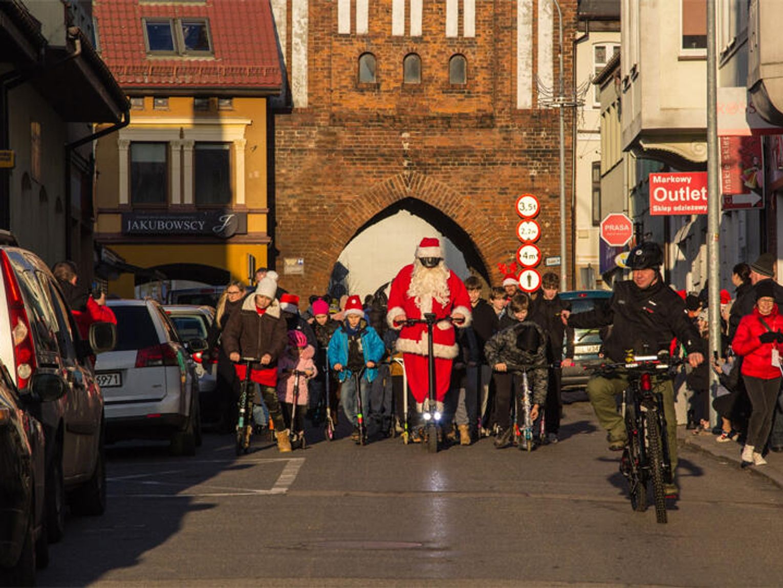 Niecodziennym akcentem było przybycie Świętego Mikołaja na hulajnodze; ubrany w czerwony strój i kask.