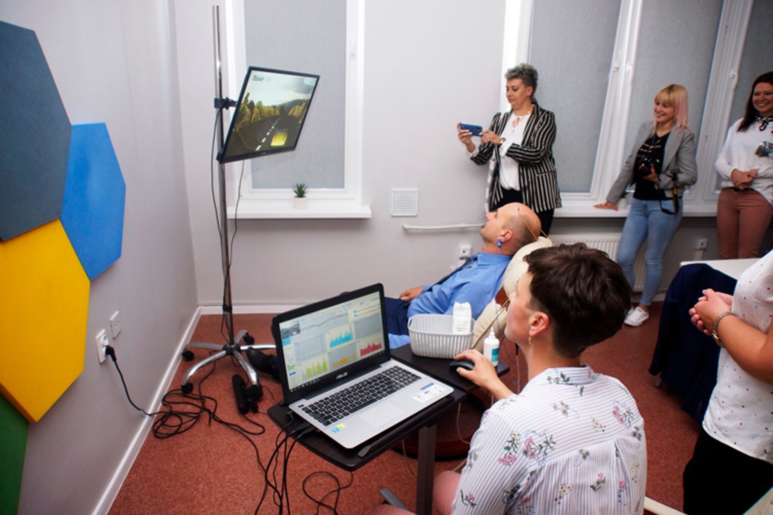Podczas uroczystości, zaproszeni goście po przecięciu symbolicznej błękitnej wstęgi (symbolu osób autystycznych) mogli w praktyce zobaczyć na czym polega terapia biofeedbacku.