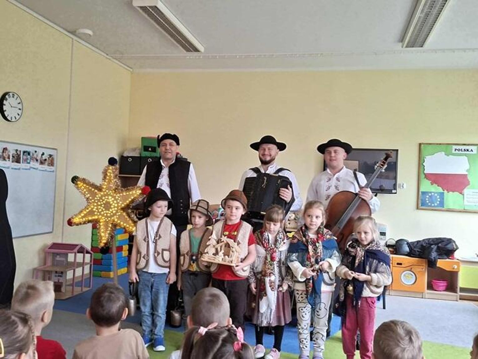Na początku grudnia Przedszkole Gminne w Gwiazdowie odwiedziła pochodząca z dalekiego Beskidu Śląskiego kapela góralska "Beskidzcy Zbóje”. Dla przedszkolaków spotkanie było okazją do poznania góralskiego stroju ludowego oraz góralskich instrumentów muzycznych – akordeonu, skrzypiec i basów góralskich. Muzycy zachęcali dzieci do wspólnego śpiewania kolęd, a same ich wykonania szczerze zachwyciły najmłodszych. Zresztą nie tylko one – w wydarzeniu wzięły także udział członkinie Klubu Seniora w Żukowie, które były równie zachwycone.