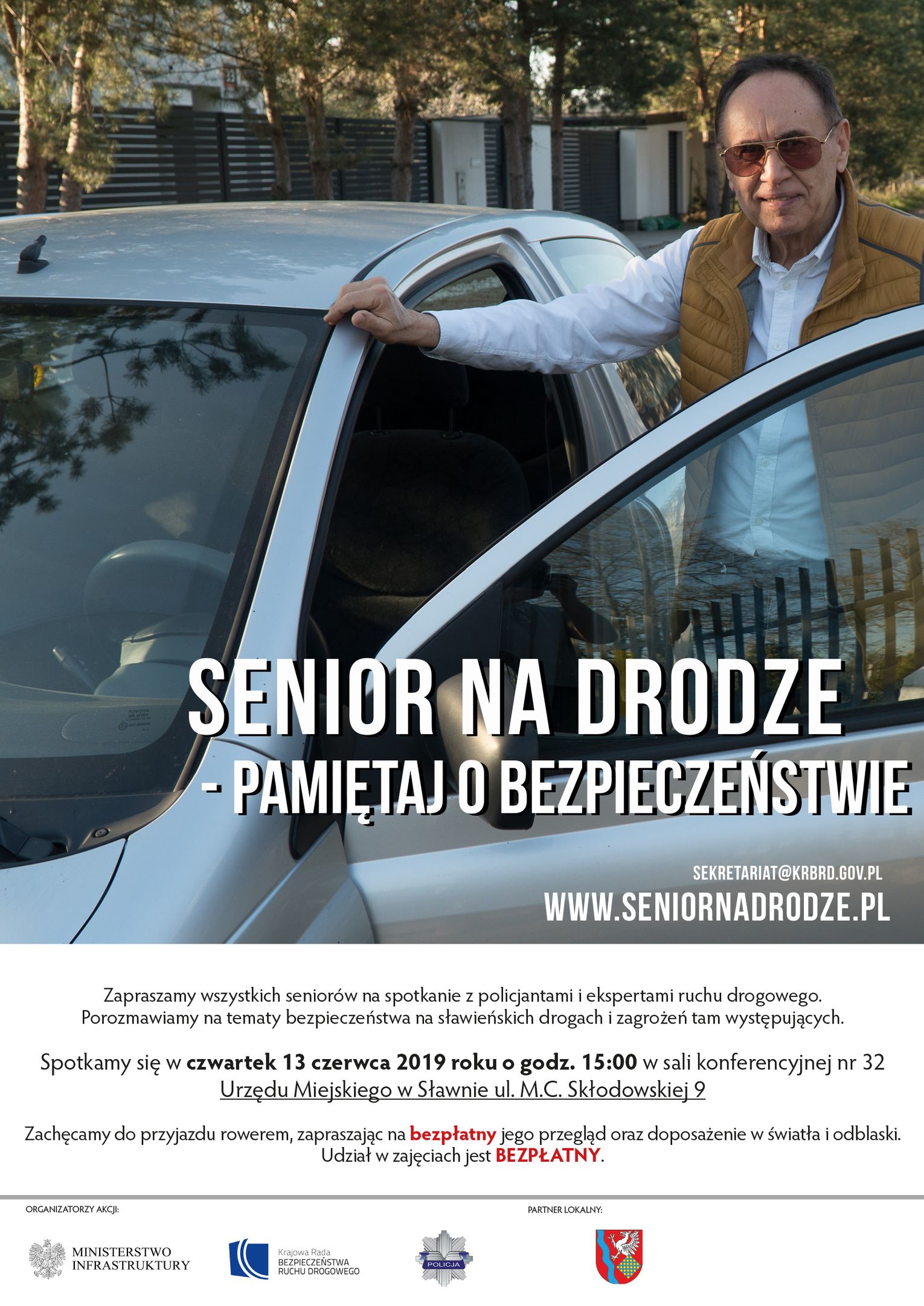 Serdecznie zapraszamy do udziału w bezpłatnej akcji „Senior na drodze - pamiętaj o bezpieczeństwie”. Spotkanie przeznaczone dla seniorów odbędzie się 13 czerwca 2019 roku o godz. 15:00 w sali konferencyjnej Urzędu Miejskiego w Sławnie.