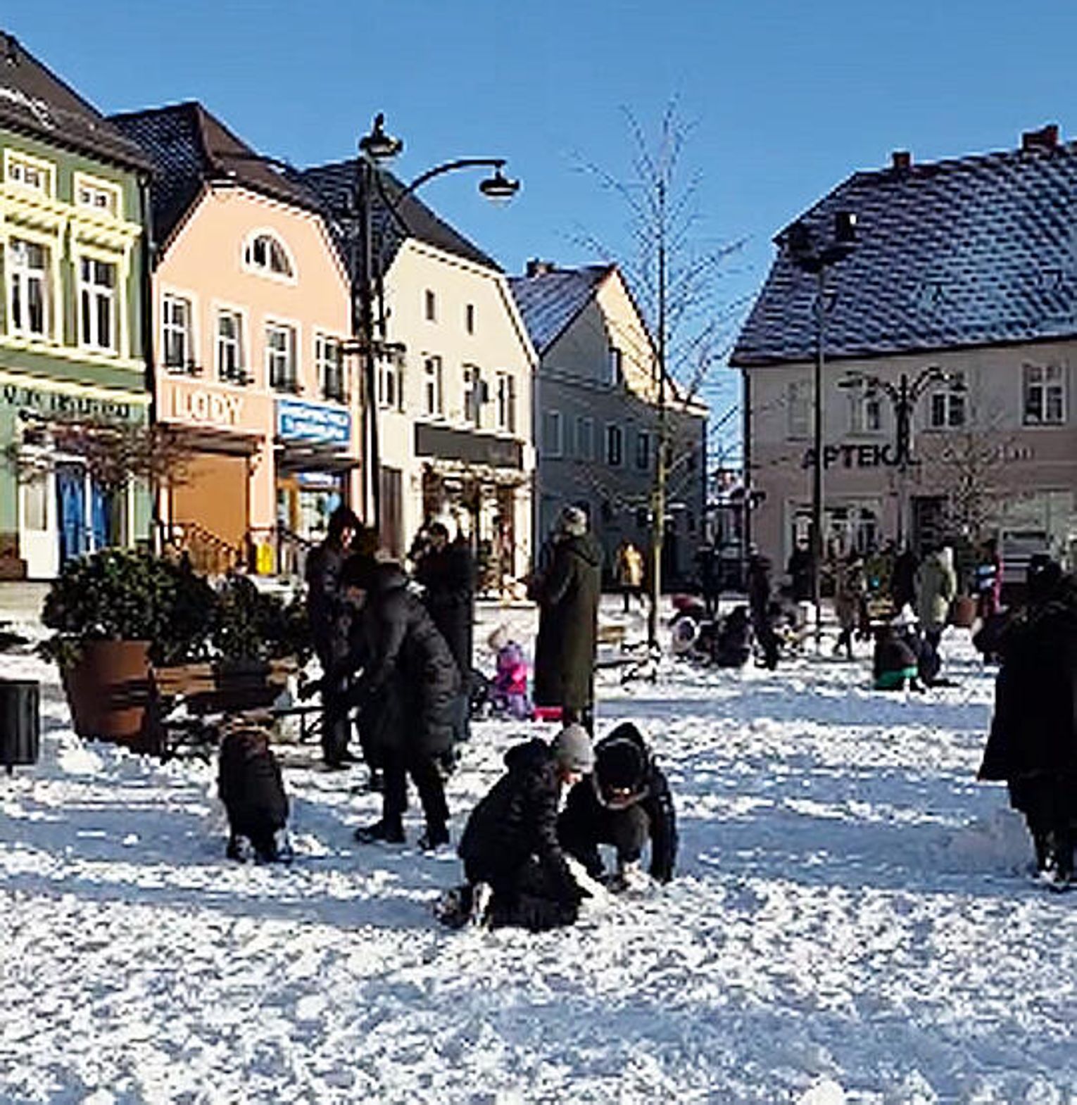 Na darłowski rynek przyszło sporo ludzi i rodzin z dziećmi, żeby przyłączyć się do zabawy. Najpierw grupki ludzi, przeważnie rodzin wspólnie lepili bałwany. A nie była to prosta sprawa, bo śnieg nie za bardzo chciał się lepić. a potem odbyła się walka na śnieżki.